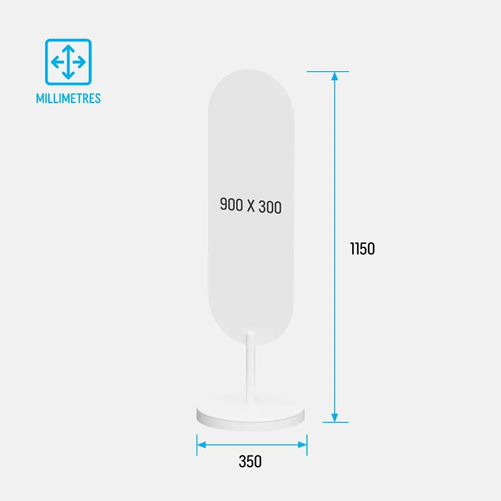In retail lobbies, shopping centres and shared buildings, this curved freestanding sign supports visitor direction signage without visual clutter. The powder-coated steel frame suits indoor and outdoor use, while the clean form aligns with modern fit-outs. It’s a practical temporary wayfinding solution that improves navigation, flow and customer experience.