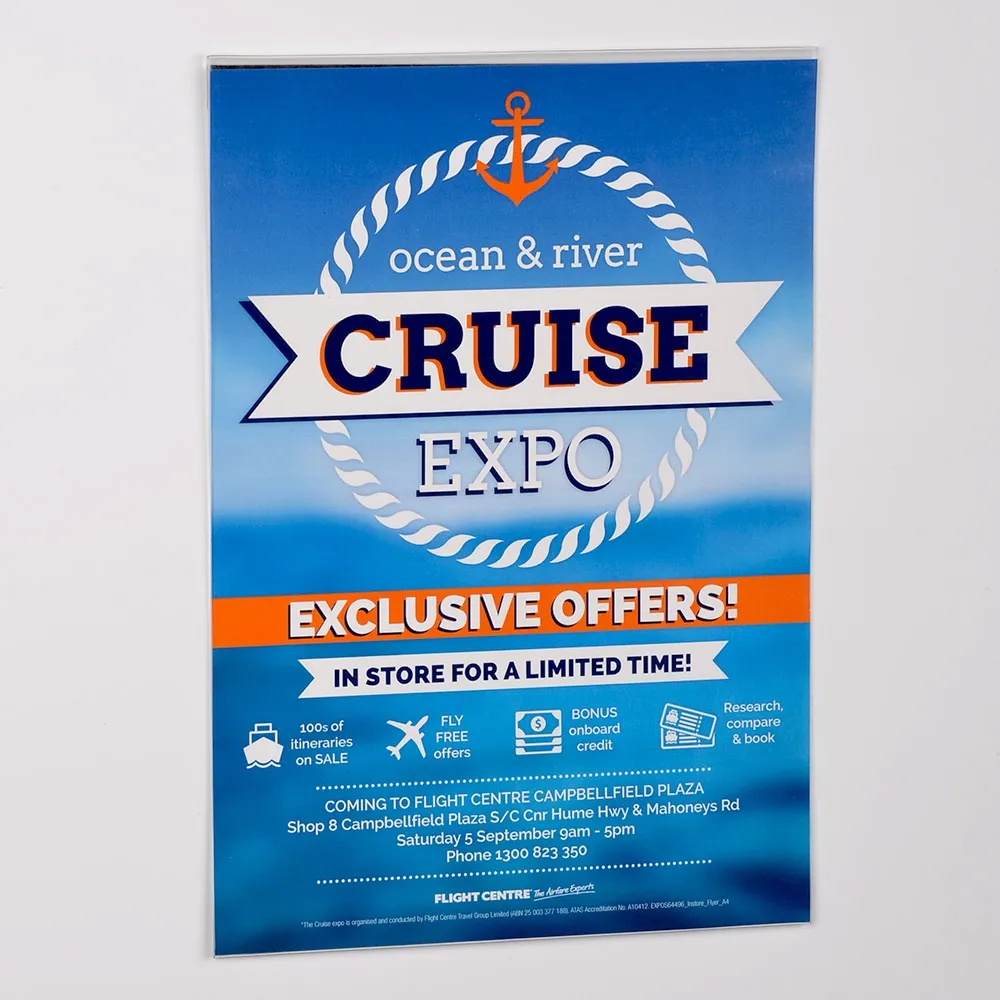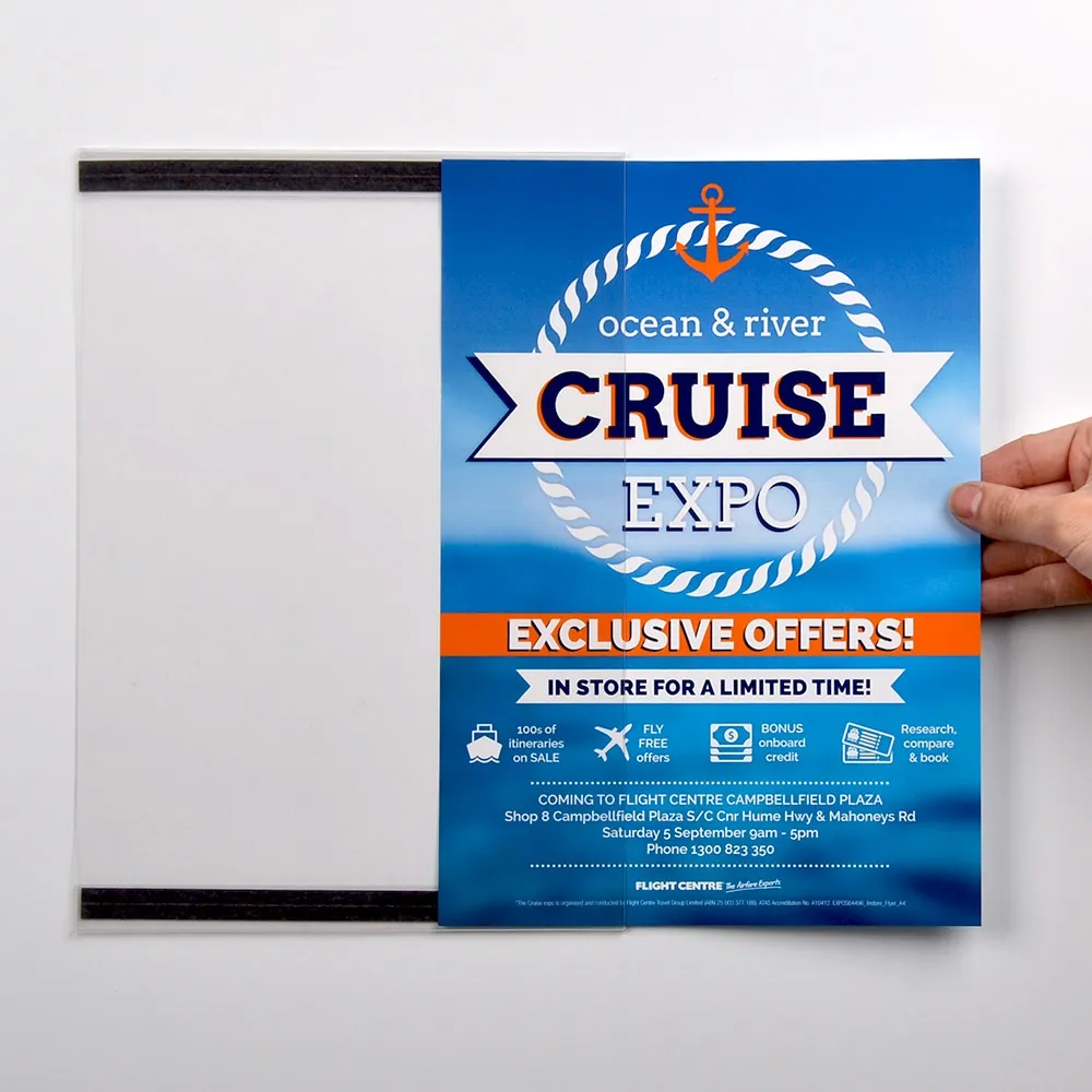 - Magnetic poster holder shows A4 (297 x 210mm) graphic in portrait format for easy viewing