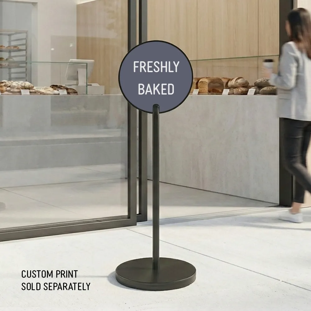 Modern Round Poster Stand solutions give businesses a clean, professional way to communicate at entry points and high-traffic areas. This round freestanding sign stand Australia businesses rely on keeps counters clear while delivering eye-level visibility for menus, promotions and notices. The circular floor sign holder format works naturally near ordering points, entrances and walkways where clarity matters most.