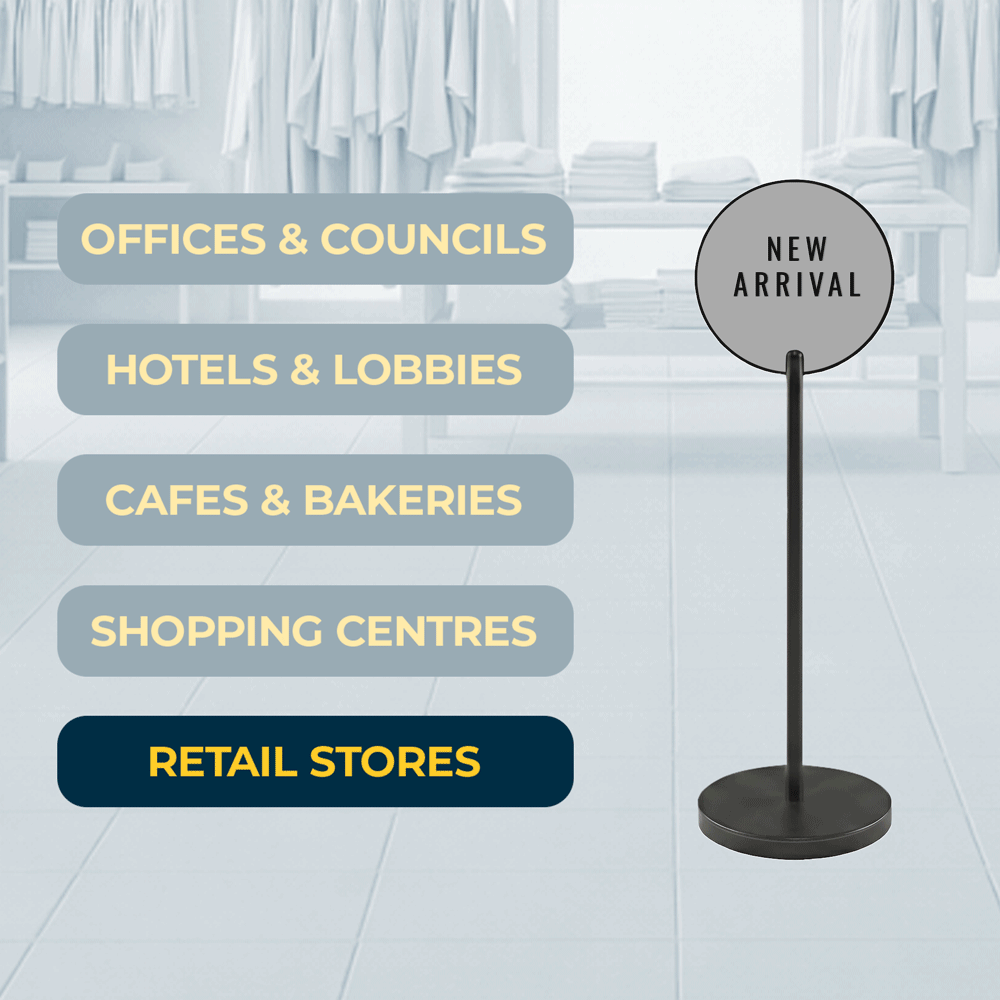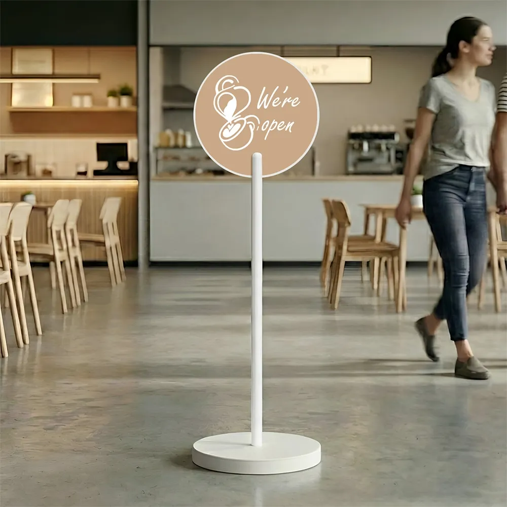 Round display signage stand delivers clear, eye-level messaging for retail stores, cafes and commercial spaces across Australia. The circular display signage stand improves entry visibility and reduces customer confusion, making it ideal for shop entrances, ordering points and high-traffic zones where clear communication matters.