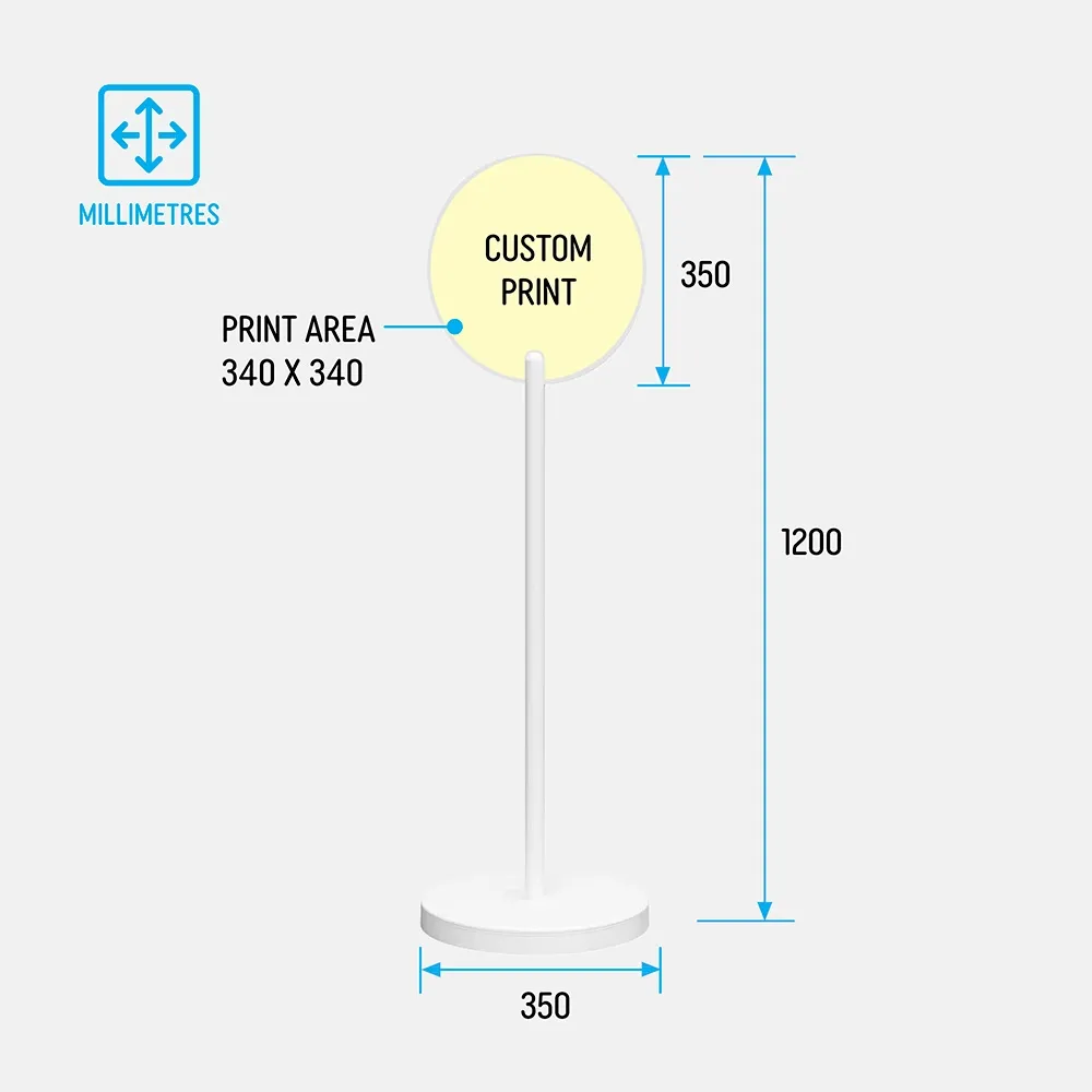 Built from powder coated steel, this round floor signage stand offers durability for daily commercial use. The stable base and compact footprint support safe placement in aisles and entrances. As a portable round display signage stand Australia businesses rely on, it provides a professional, cost-effective alternative to permanent fixtures.