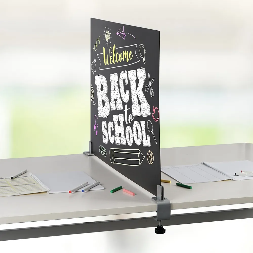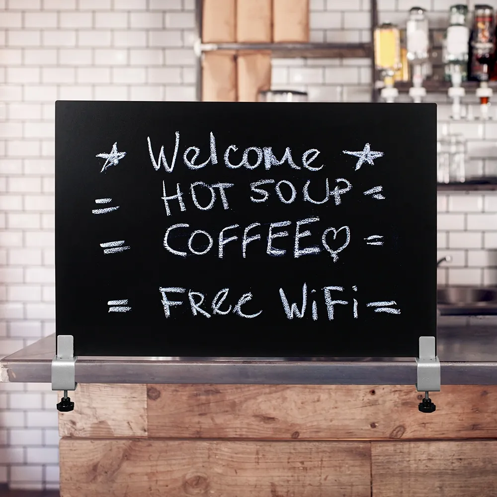 This chalkboard tabletop sign, like many menu blackboards, can be placed on different table top surfaces to offer information, display menus, available specials, and more! There are (2) clamps included this set that grip the blackboard in place in between pieces of rubber that help keep the board in place without damaging the display. These clamps are able to work with surfaces between 6 and 40mm in total thickness, supporting a wide range of standard tables.