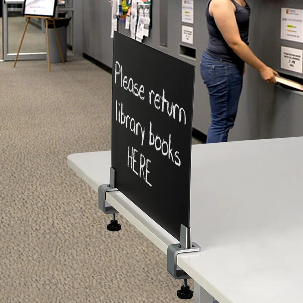 - Tabletop chalkboard includes clamp kit for tables that are 6 – 40mm in total thickness