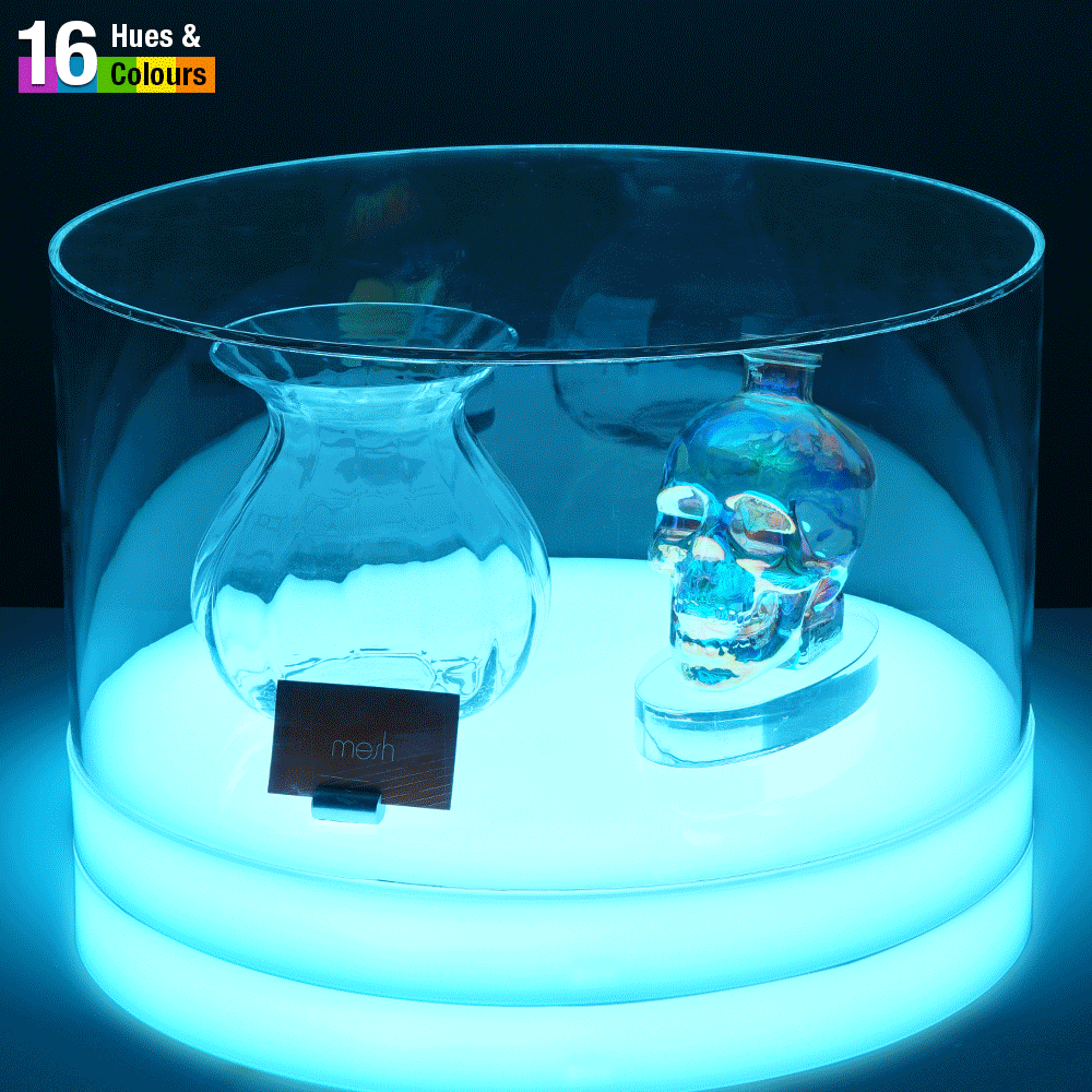 - LED base offers 16 colours & hues to choose from to illuminate inside of display