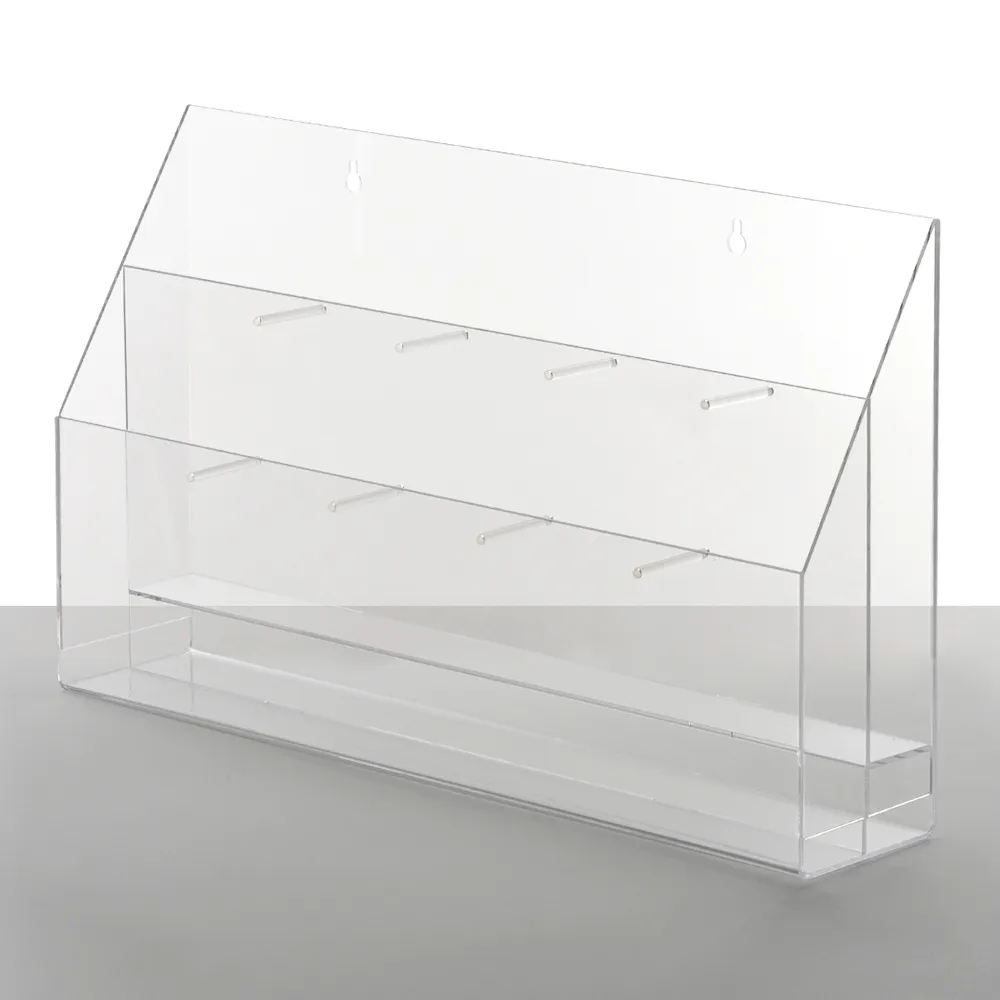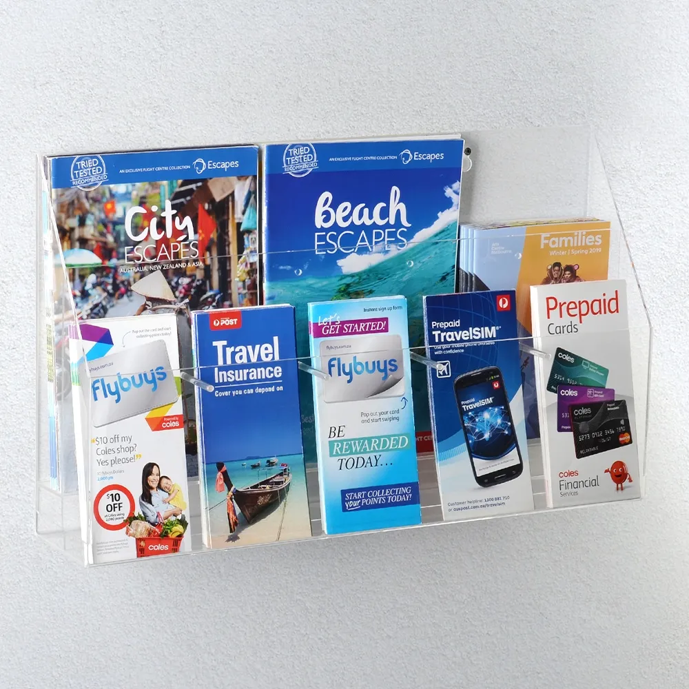 This acrylic brochure rack, wall mounted literature holder is a tiered display that lets you maximise space at your business, using multiple levels to hold literature in a smaller space! The rack itself is 350 x 585 x 120mm, minimising space it takes up on your countertop or to allow additional holders or space to conduct transactions! This display is perfect for retail stores, doctor offices, exhibition halls, restaurants, information centres, car dealerships, travel agencies, and more to provide take away information for visitors to go over after they leave.