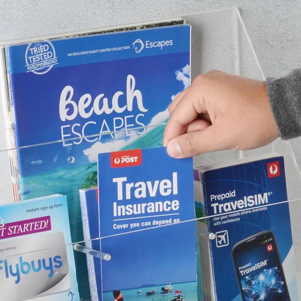 - Designed to hold DL (99 x 210mm) or A4 (297 x 210mm) standard sized brochures
