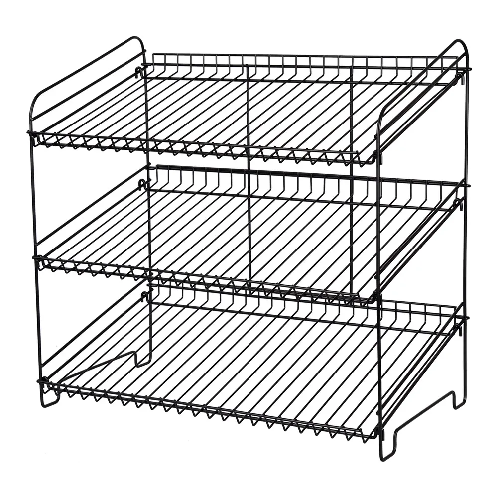 This 3 tier wire display is made from powder coated steel with a black finish, providing a durable display for daily use in fast paced environments. The neutral finish fits in with any décor and makes items placed in the shelves really pop out. The lightweight display is only 3.9kg and ships disassembled, with set-up taking no time without any tools necessary. Order by 3pm EST for same day despatch to anywhere in Australia when in stock, only from Slimline Warehouse!