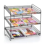 This wire countertop display rack has multiple levels to make it easy to provide customers with an assortment of choices! The tabletop retail fixture has (3) tiers, with each level 390(D) x 590(W) mm to provide heaps of room for holding newspapers, magazines, maps, or even food items such as breads, snack foods, and sweets. Reading materials up to A2 (420 x 594mm) fit on each shelf. The front has a 430mm high raised lip, with the back having a 580mm raised edge to prevent items from slipping off and keeping them neatly in place.