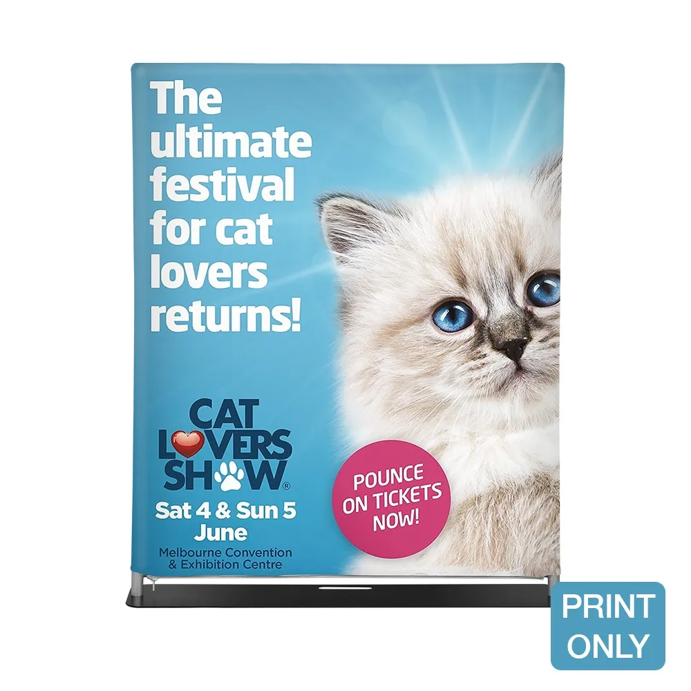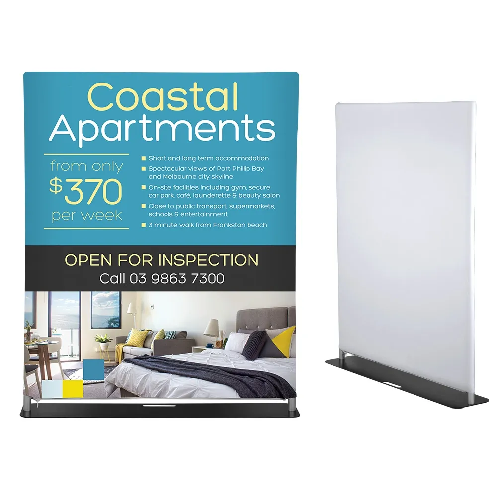 - Stretch fabric banner is easy to install on frame, with zipper to make wrap taut