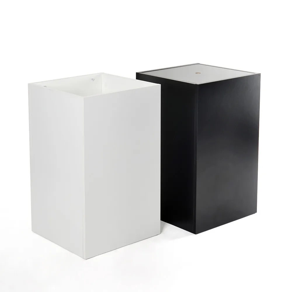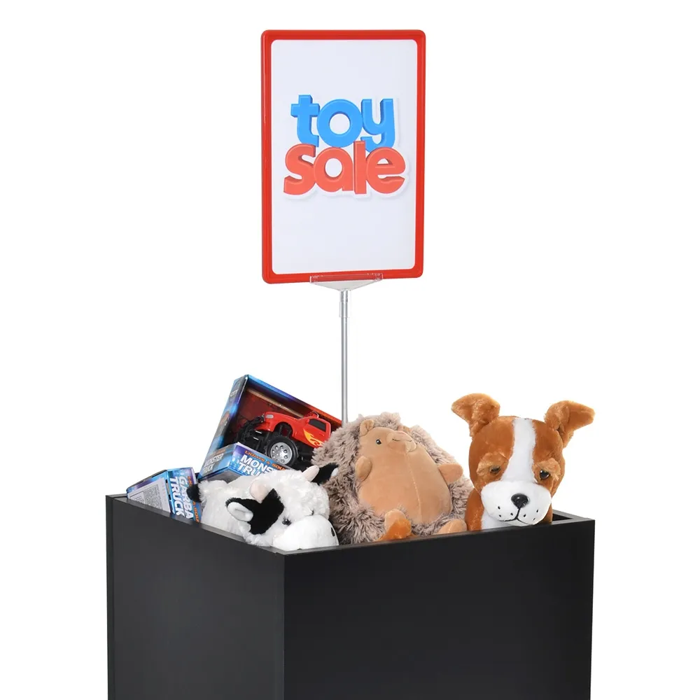 This retail bin is perfect for holding bulk items or showcasing merchandise in gift shops, information centres, retail stores, shopping centres, and more! The retail dump bins features an adjustable inner shelf to allow you to display a variety of items sizes without issue as well as keep the unit looking full as stock sells out. There are (4) increments to choose from: 712, 450, and 250, and even with the top to create a display display pedestal for highlighting hero products. The shelf has a hole in the middle for easy removal and access to the pegs inside the unit for placing at the desired depth.