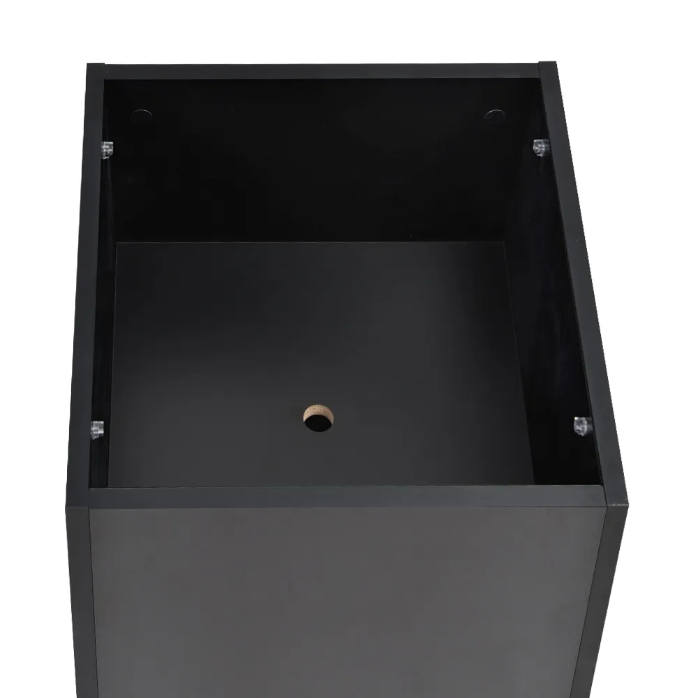 - Black bin is 750mm tall and has a 450 x 450mm footprint for easy positioning