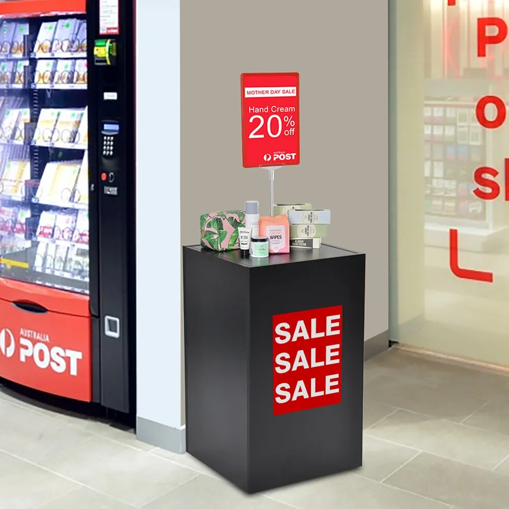 This bulk product display is made from laminated wood to be durable and cost effective. The black finish not only provides a neutral colour that works with any décor, but also offers a nice backdrop that focuses attention on your graphic. Assembly is fast using simple tools, as the kit is shipped knocked down for lower shipping costs. The 20kg weight provides stability whilst still being easy to move into position. Buy online today, with Slimline Warehouse providing fast shipping to anywhere in Australia!