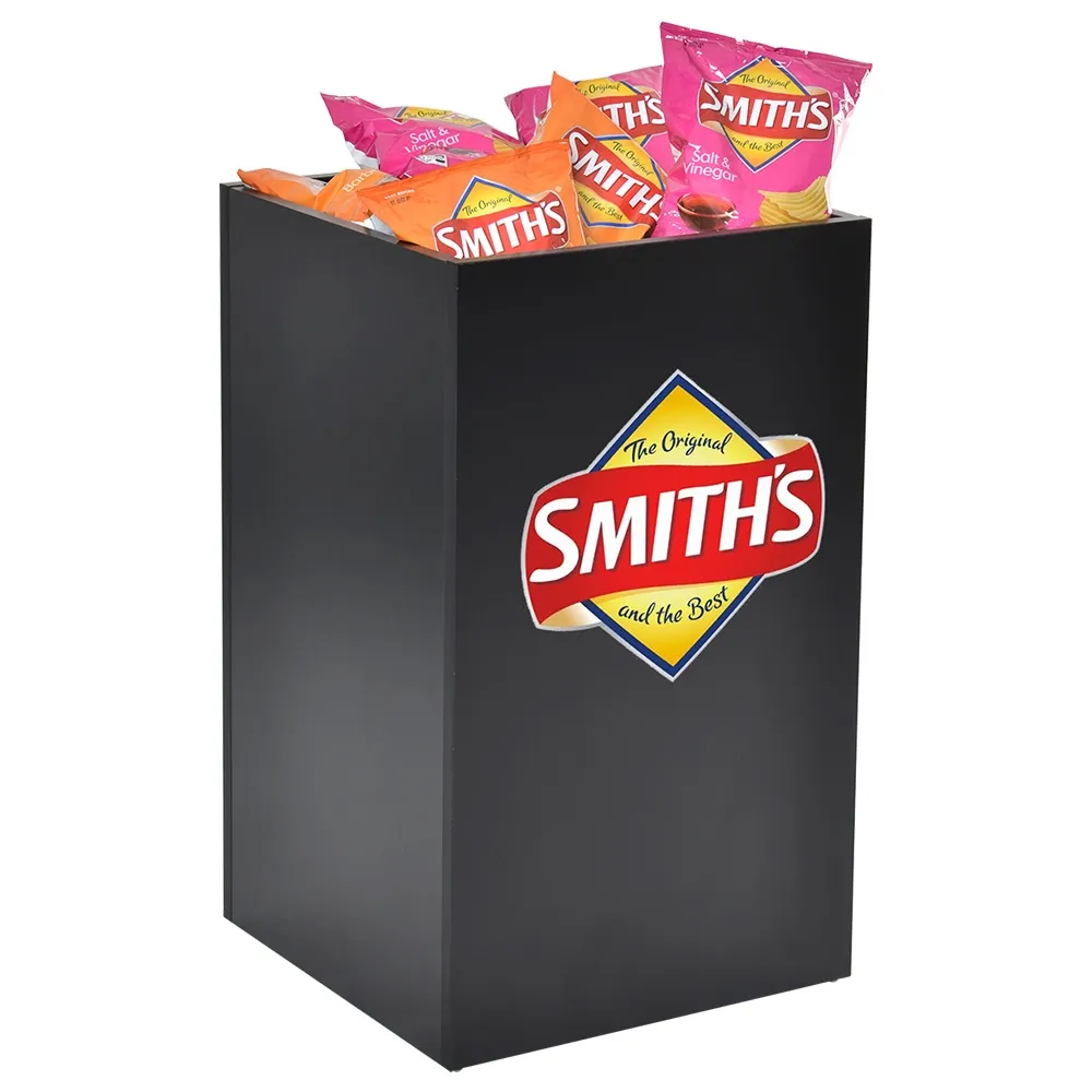 The retail store fixtures, dump bins have your custom designs printed onto a graphic up to 350 x 550mm in overall size. For a stylish look, the graphic is cut to size to be more eye-catching, with the vivid colours thanks to the digital printing process helping to draw passersby attention. Our in-house team is available to help with any design questions, with different tiers of help available to ensure you get the graphic that meets your needs!