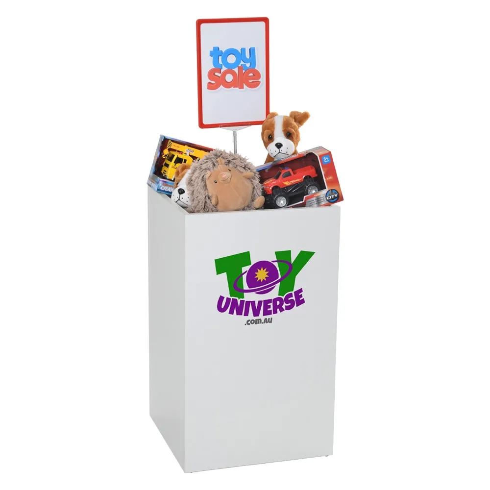 Shop dump bins hold bulk items for purchase in an accessible way that is perfect for any retail location. The retail dump bin features your custom graphic printed and cut to shape to brand the plinth for easy recognition! Your design is printed in full colour and can be up to 350 x 550mm at it's largest sections. Our in-house experts utilise a digital printing process that offers a true depiction of your design in vivid full colours. Help is available from our graphics team to help fulfill your vision, with different packages available based on your needs!