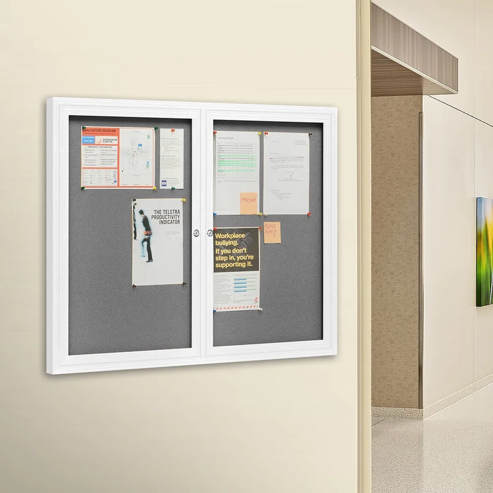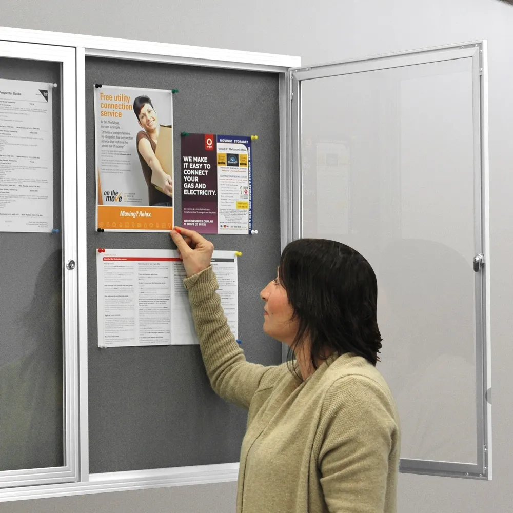 • Office notice board has swinging clear doors made from shatter resistant polycarbonate