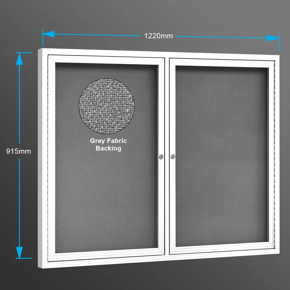 This office notice board is a lockable display, making it easy to public display notices for employees, visitors, tenants, customers, and more to see securely in any location! The swing door bulletin board has a lock on each of the two doors, with each side offering 840 x 555mm of viewable space to display an assortment of posters with ease. The swinging doors features shatter resistant clear polycarbonate fronts, providing both a safe and durable display. This style of bulletin boards is not limited to office use, it can also be found in museums, community centres, transit stations, schools, lobbies, information centres, and more!
