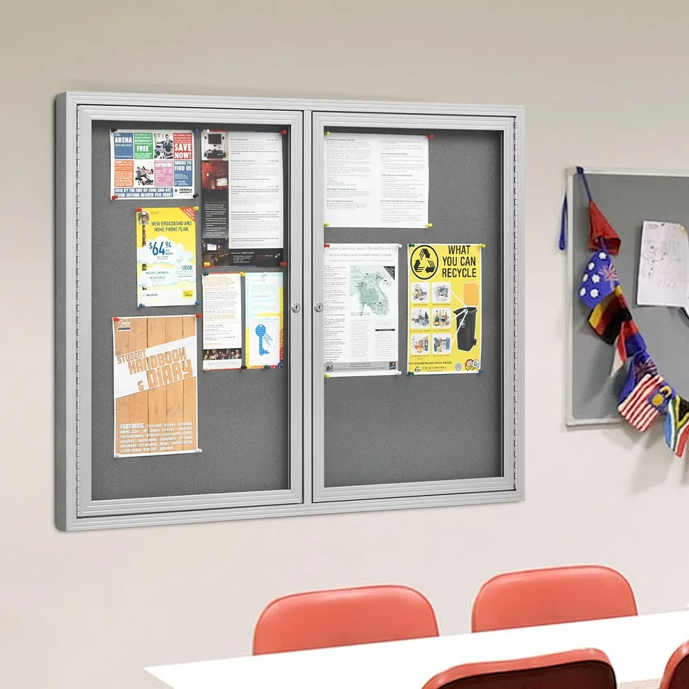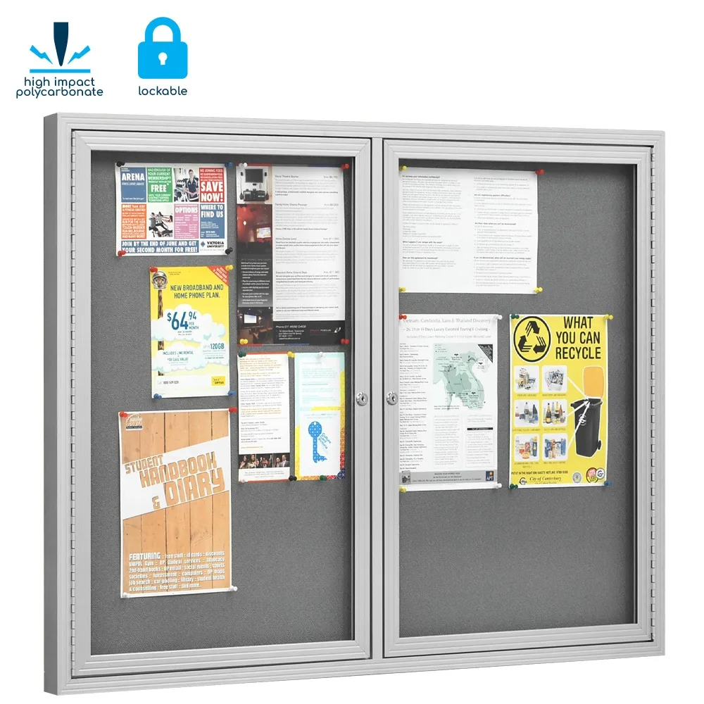 A notice bulletin board, also known as an enclosed message board and lockable display board, has polycarbonate doors that are shatter resistant to provide your business with a strong, safe display. These doors are lockable, helping to prevent tampering of the case contents which allows the fabric noticeboards to be used in public areas without worry. The notice bulletin board can have each door opened individually so the entire display isn't opened to switch out posters.