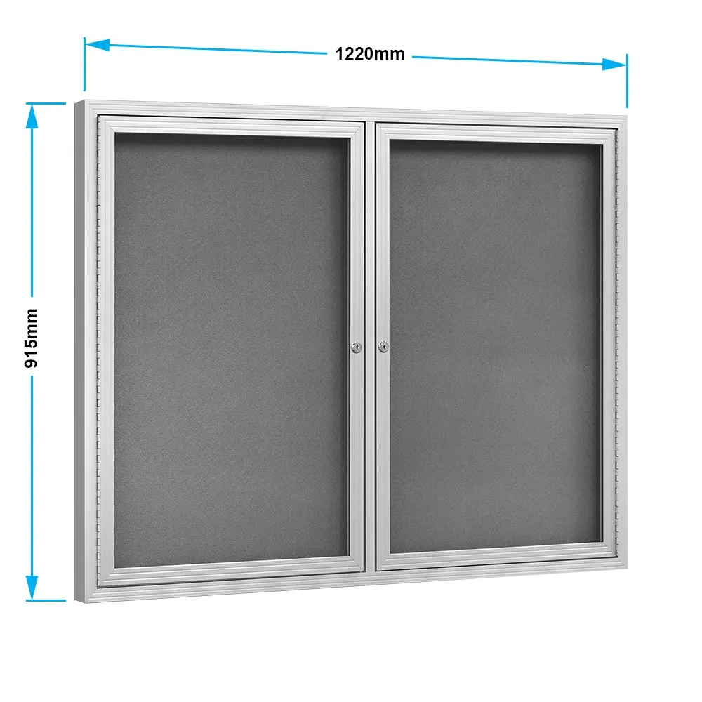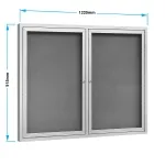 The enclosed noticeboard, notice bulletin board features a 840 x 555mm area behind each door for displaying an assortment of fliers, posters, notices, and announcements. The board is a self-healing corkboard with a woven light grey fabric across the display for an attractive looking unit that is receptive to tacks and pins for holding the memos in place.