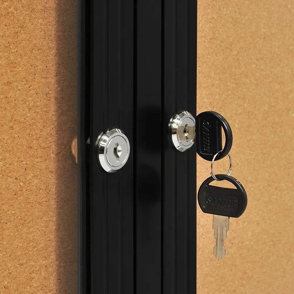 The large pin board is a lockable unit, able to be displayed in public areas without worry of case contents being tampered with, vandalised, or altered. The noticeboard has a lock on each individual door, so the entire unit doesn't have to be opened when changing out information!