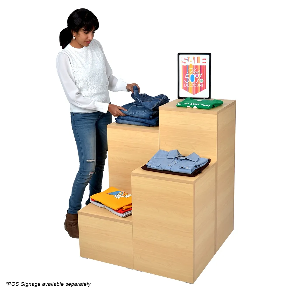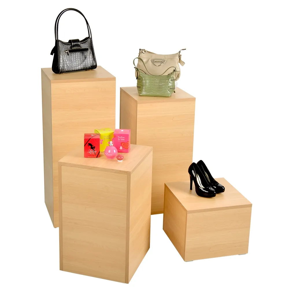 These wood pedestal stand are made from laminated timer to combine durability with a low cost display that works on any budget. The store fixtures have a classic maple finish that is both familiar to visitors and offers an appealing look that fits in with any décor. The top of each stand is 38 x 38cm, making it easy to display a wide variety of goods at your store.