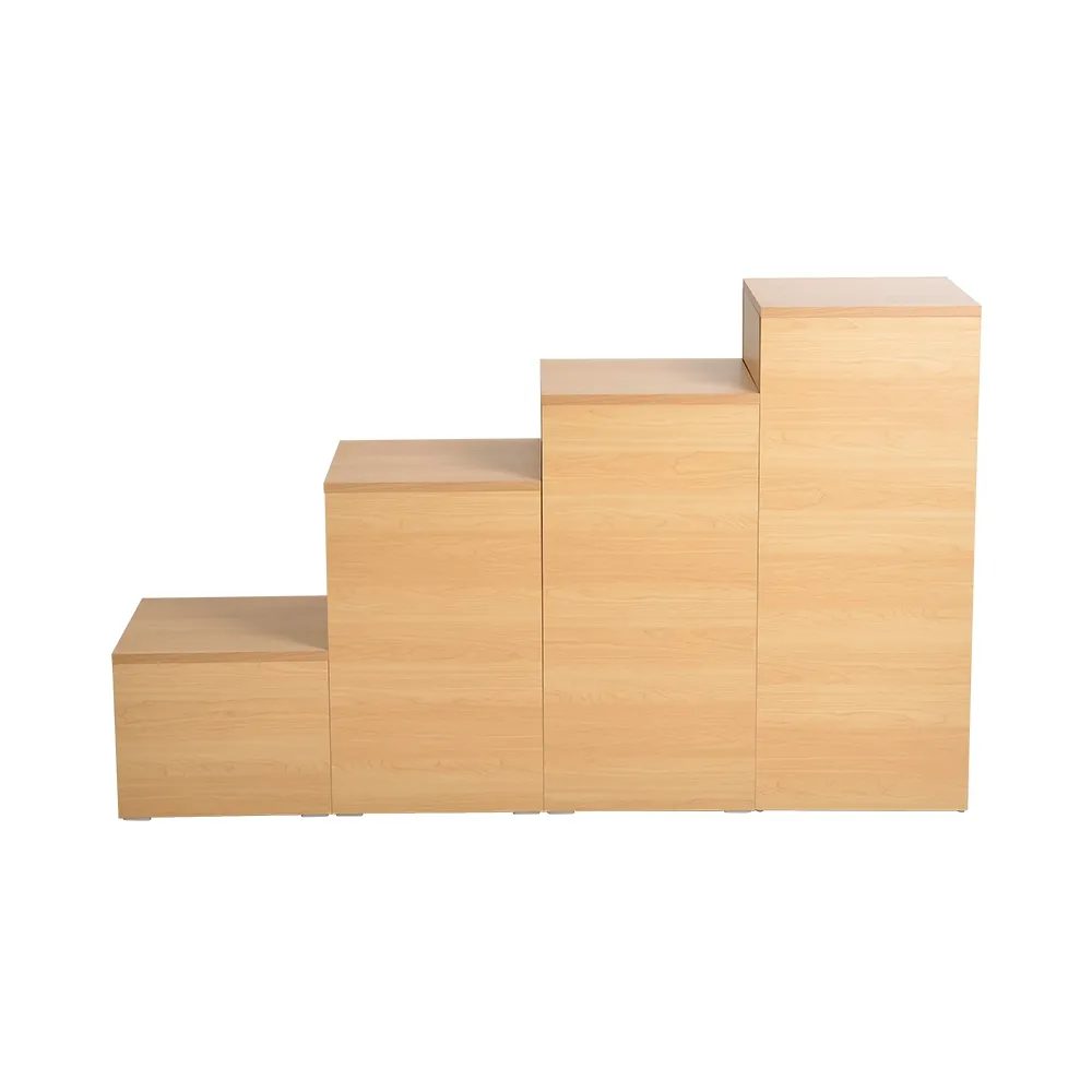 These display plinths, wood pedestal stands help you to merchandise items in retail stores or shopping centres and expertly display pieces at art galleries and museums. The full set of stands allow many configurations that help to draw passersby attention and get them interested in what is on display. There are (4) heights included with your purchase: 30, 61, 76, and 91cm. This variety is perfect for creating a merchandising stand as you need it that best works for your needs.