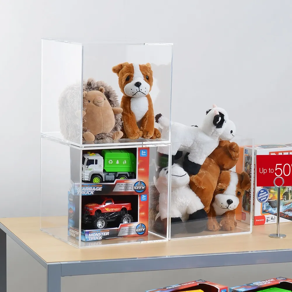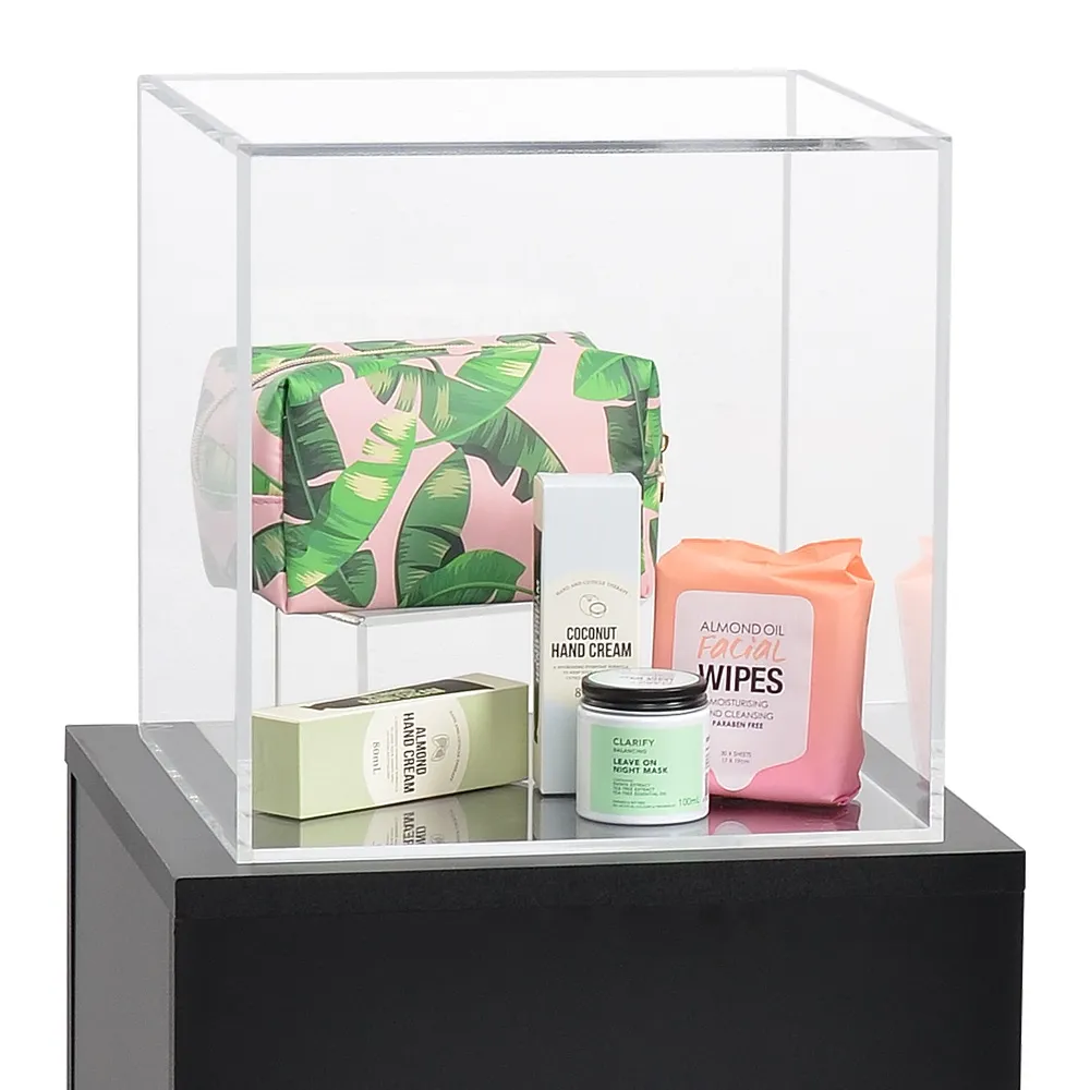 This clear perspex box is a versatile retail display, able to be used as a dump bin, stackable shelves, or protective covers! The acrylic display cube is made from 6mm thick clear acrylic with polished edges for a glass-like look with increased durability and lower cost. The clear sides provide a full view to the contents whether used atop a plinth to protect items, as a bulk item bin in a retail store, or stacked on top of one another to maximise display space. The box dimensions are 315 x 315 x 325mm, easily holding a wide variety of items or protecting an item on display in museums, art galleries, and high end retail shops.