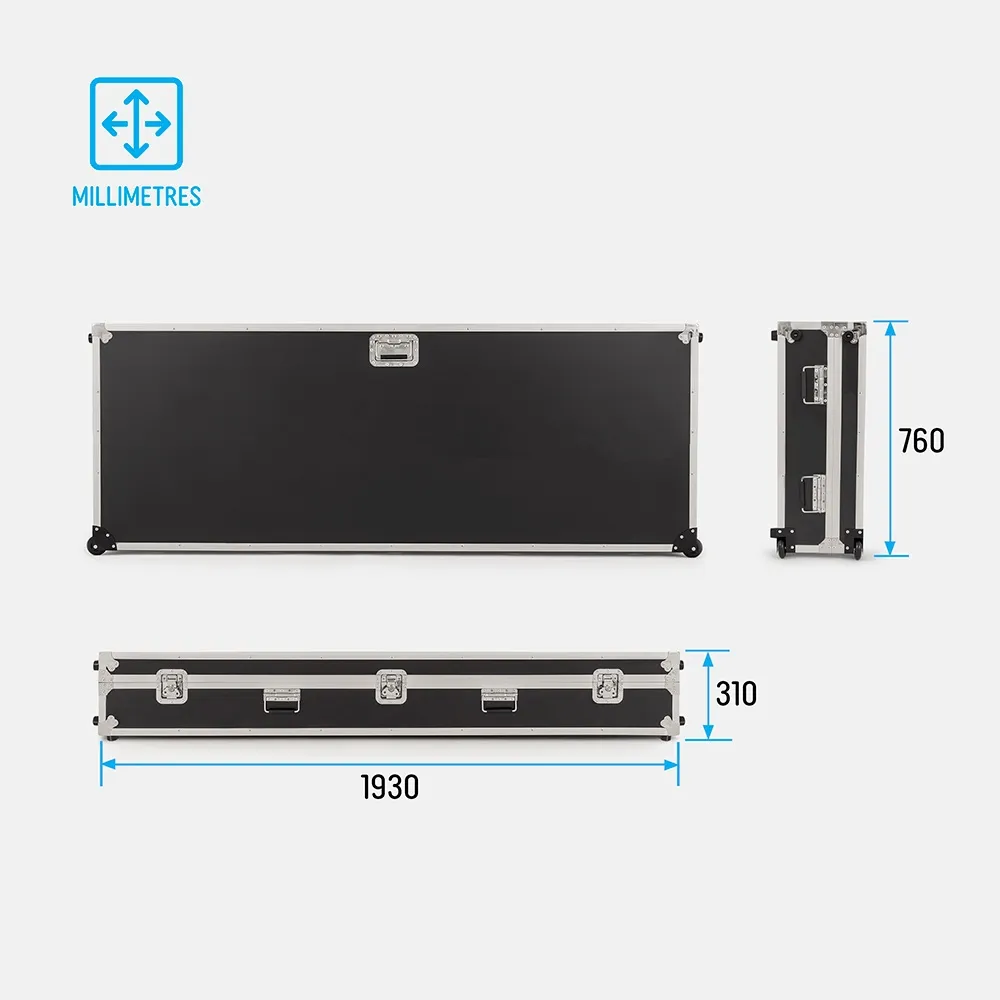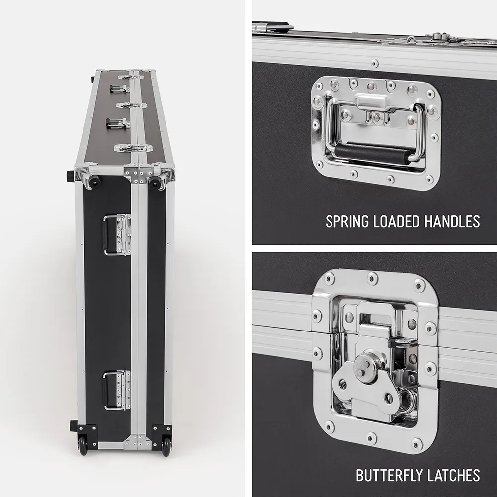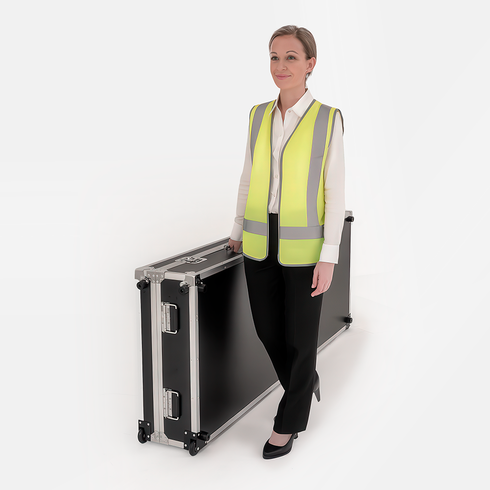 Multi-site retailers, shopping centres, government facilities and education campuses rely on this road case for 43" digital display units to reduce manual lifting risks. Staff can manoeuvre the unit with smooth-rolling castors, while internal strapping maintains upright positioning in storage rooms, corridors and loading docks. It is suited to AV operators managing frequent screen movement.