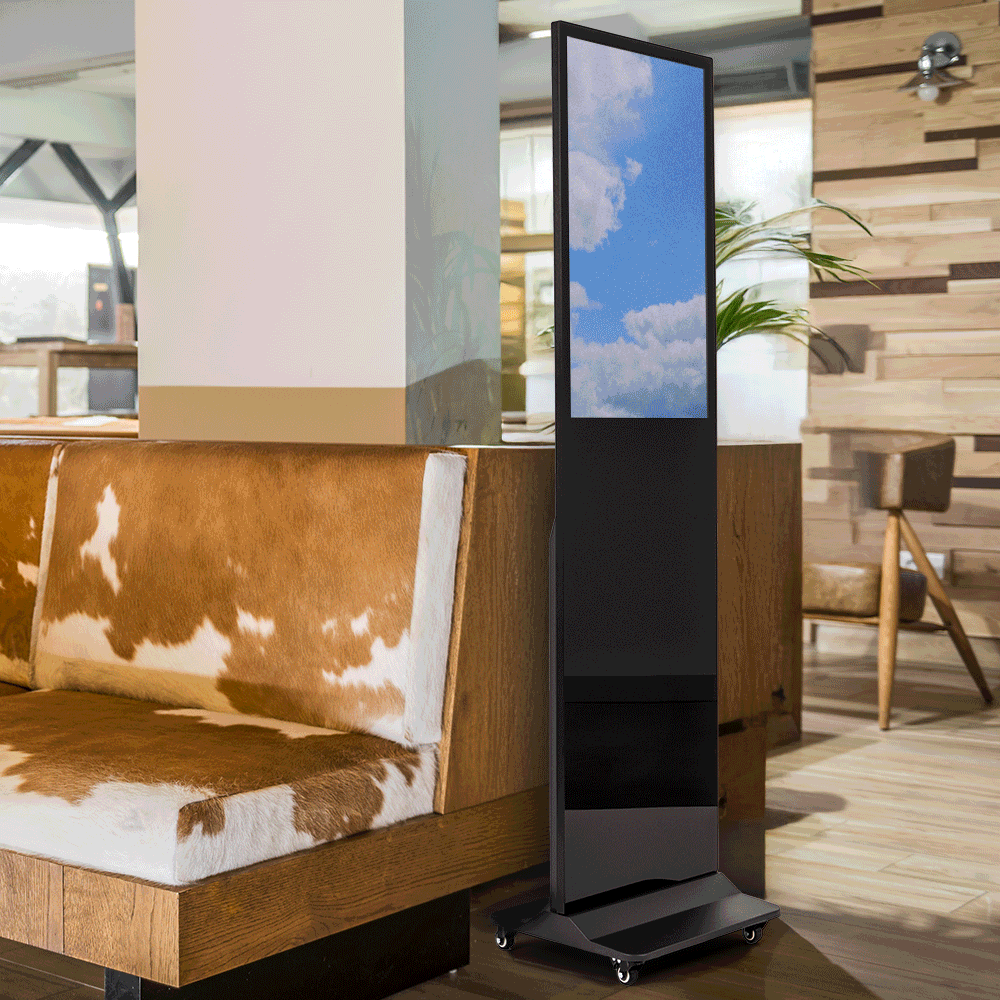 The unit includes an integrated CMS for simple content control. Updates are fast, and playback stays reliable for daily commercial use. It replaces outdated posters, reduces printing costs and keeps messaging consistent across multiple sites. The stable base and durable housing support long-term operation in demanding locations.