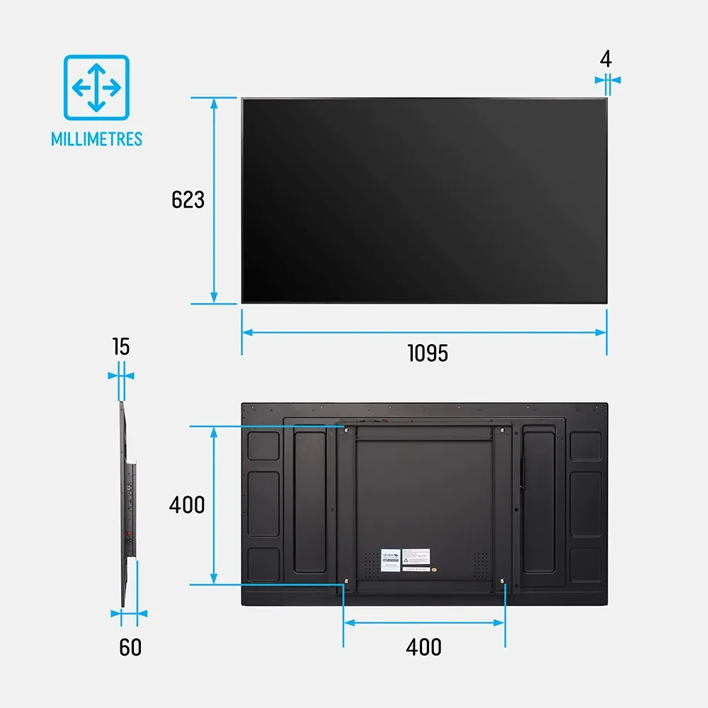 - Commercial-grade panel with 4mm thin bezel, rated for 18 hours of daily use