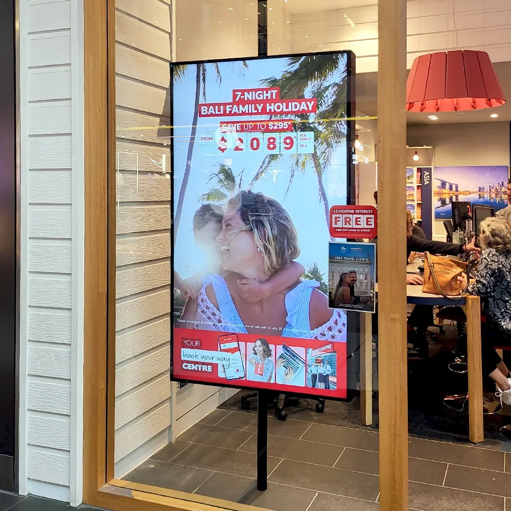 The display supports content updates through USB, TF card, App, or cloud-based software. Wi-Fi and Bluetooth connectivity ensures seamless remote access, while on-site adjustments can be made using the included remote control. With a brightness of 350 nits, your visuals will remain vivid and easily readable across varied lighting environments. Using a digital signage solution like this allows businesses to streamline promotions, reduce printing costs, and increase sustainability. Slimline Warehouse offers same day dispatch Australia-wide with this and most stocked items ordered by 3pm AEST.