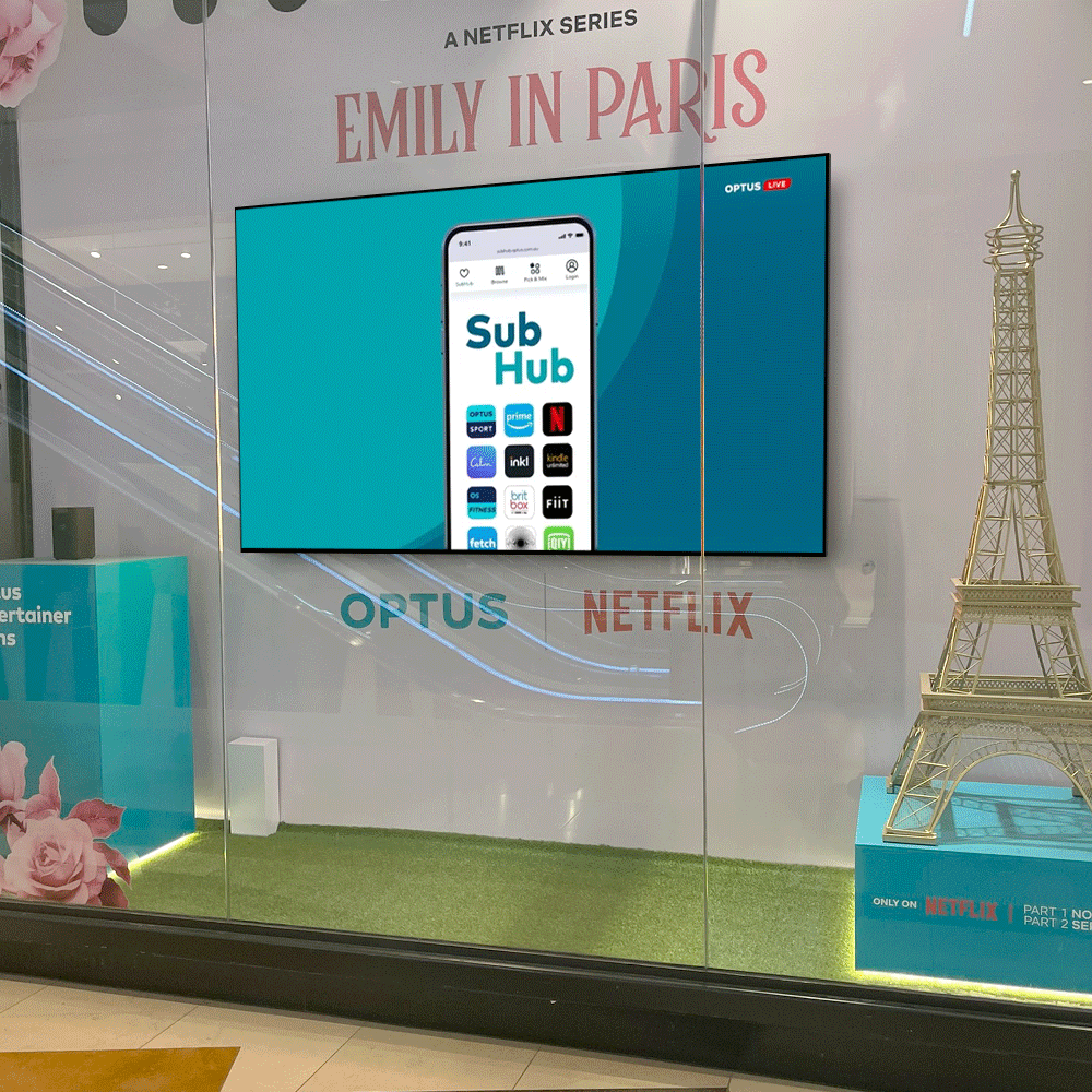 - 65” screen has 1080 x 1920 full HD resolution for crisp promotional content
