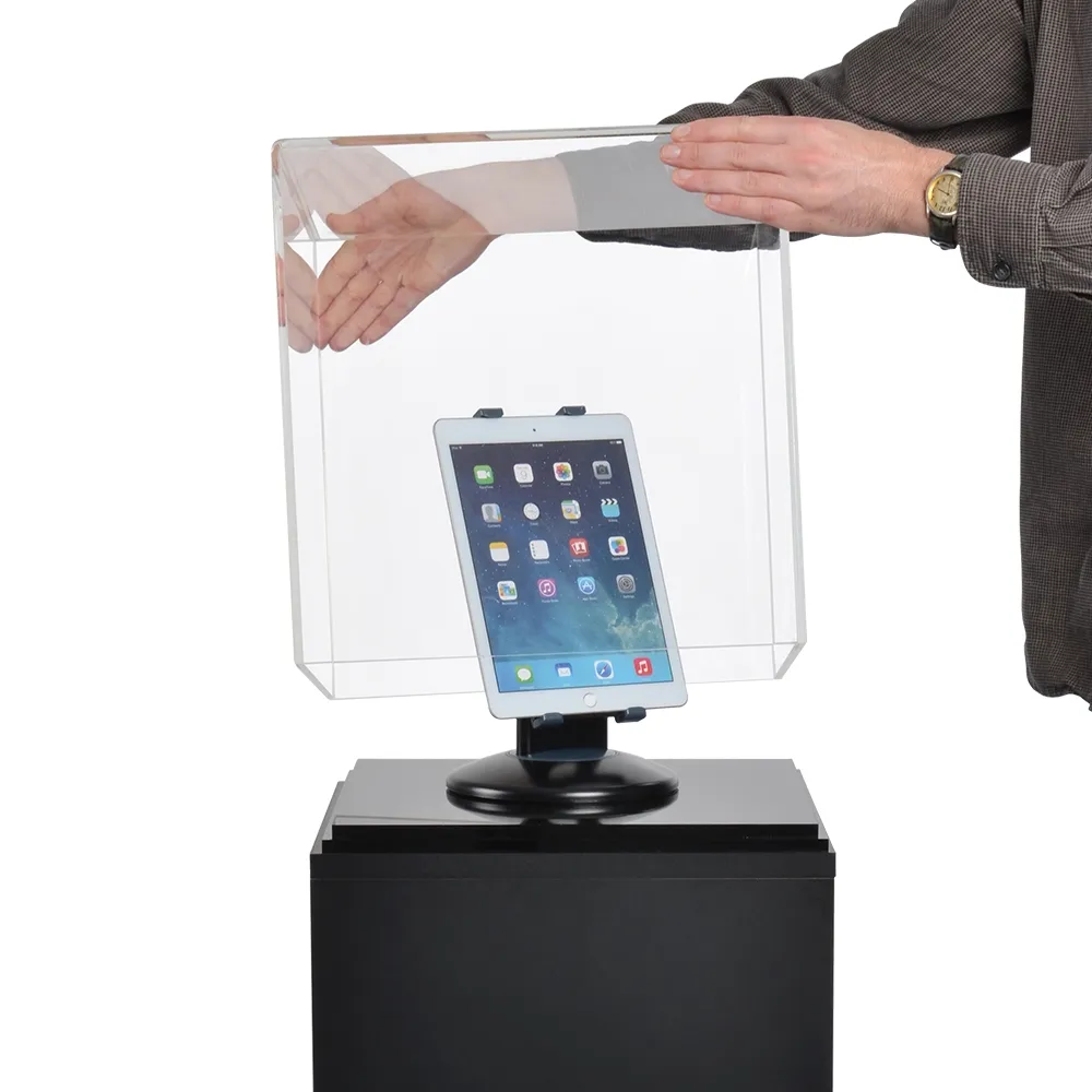 This plinth stand display, acrylic cube pedestal has a 76cm tall plinth included that holds the display box in place. This helps draw attention to the displayed items and make it stand alone to really get visitors interested. Overall, the display is 116cm tall and has a 382 x 382mm footprint, taking up little space on a floor to ensure other displays can be placed in the vicinity and visitors can easily walk around. The top surface is 38 x 38cm, easily accommodating the acrylic display cube which attaches using (4) double-sided tape squares.