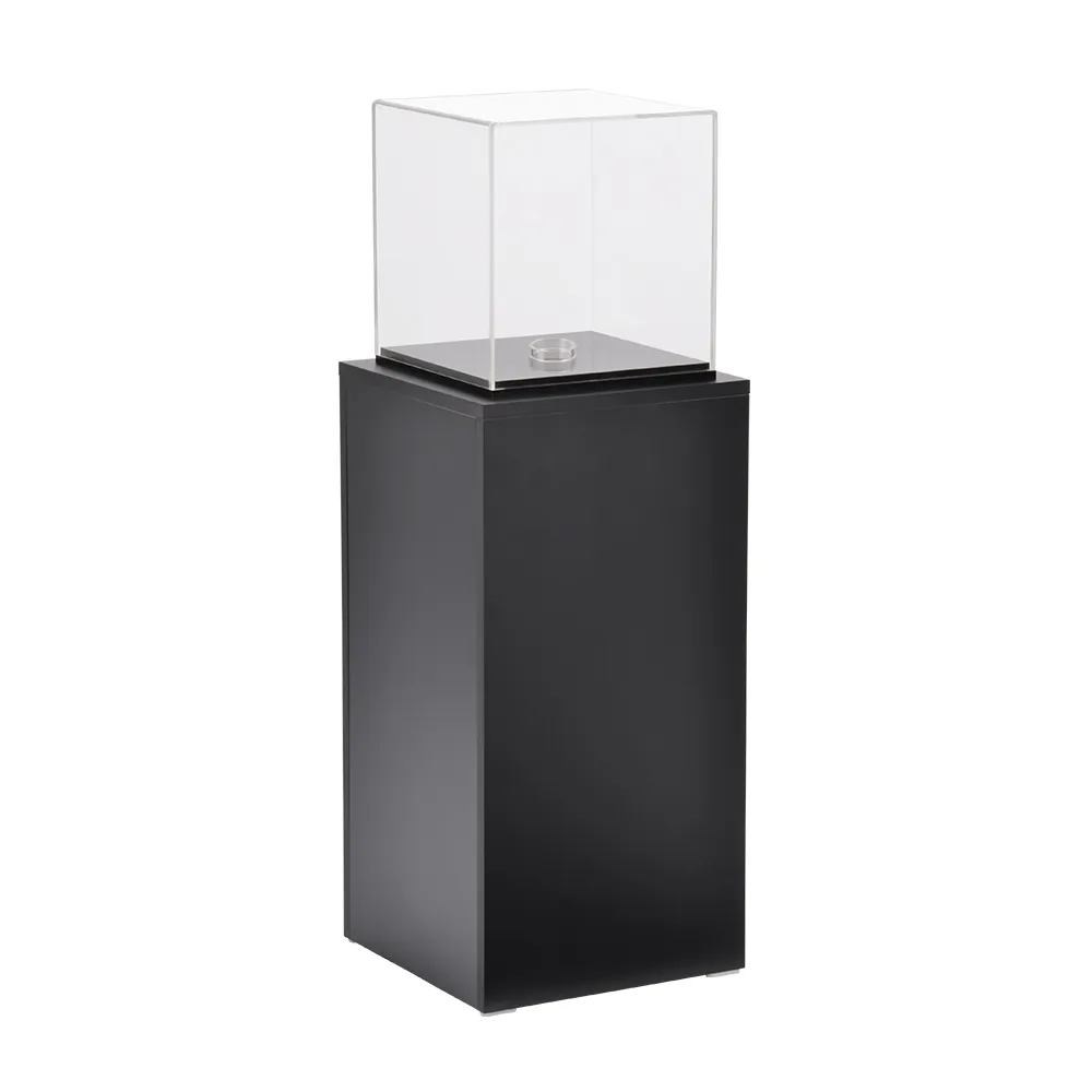 - Modern pedestal stand has 317 x 317 x 332mm clear acrylic cube atop plinth