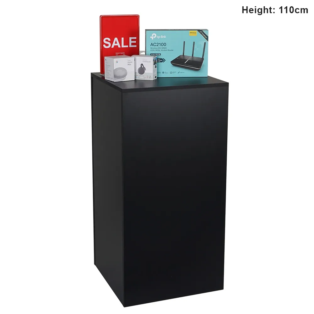 - Black pedestal is 1.1m tall with a large 55 x 55cm top area to place items!
