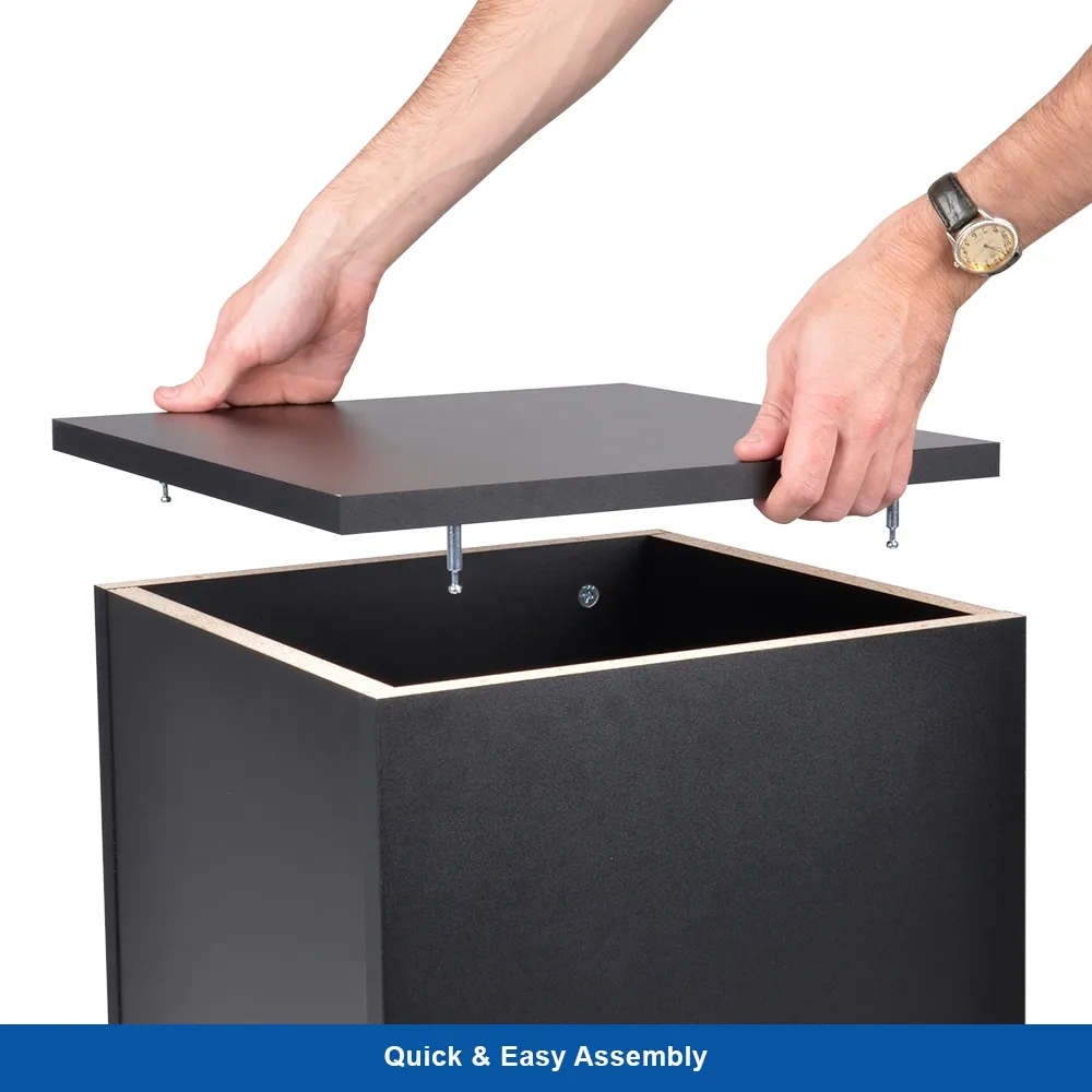 This black pedestal, part of our line of retail store fixtures, is made from laminated MDF to offer an affordable display that is durable for daily use in different locations. This style of display is popularly found in retail stores, exhibition halls, art galleries, museums, department stores, and more. The black finish matches well with any style of décor, as the neutral colouring can complement anything. Use this wooden stand to hold an iPad stand to check in guests or place an item out of the box so potential customers can get a full view and handle on the product prior to purchase.
