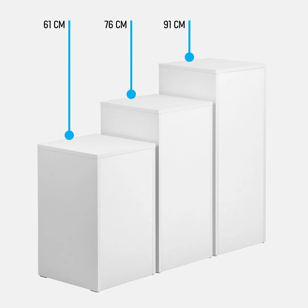 • Plinth pedestal set has (3) heights included with purchase: 61, 76, & 91cm