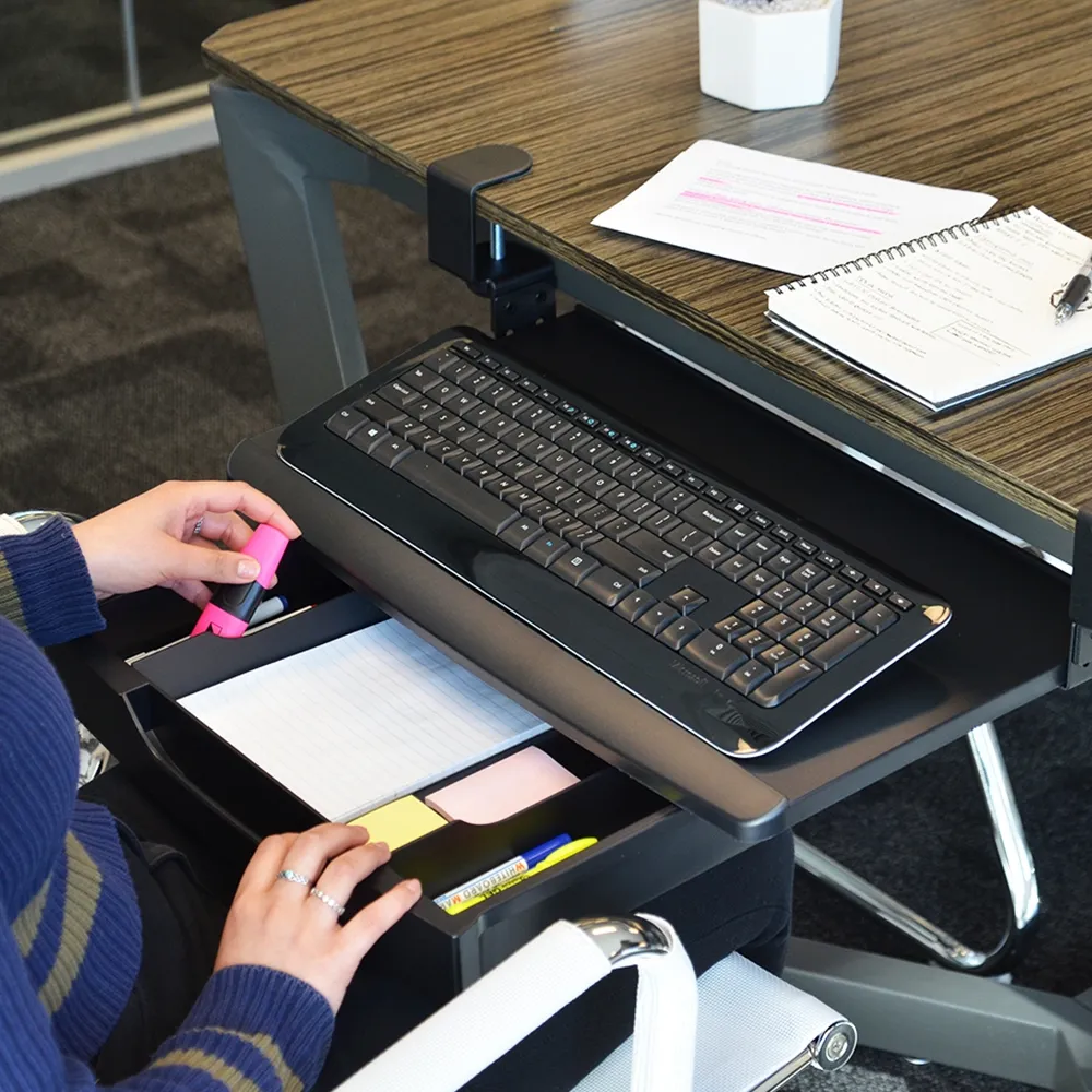 Turn a table or counter in offices, workshops, labs, reception areas, and even exhibition booths into a workstation by using this attachable desk tray to hold peripherals that are hidden from view when not in use! Slimline Warehouse has a huge selection of thousands of products to help you outfit your business on any budget. Most in stock items purchased by 3pm EST will ship same day Australia-wide, buy online for your business today!