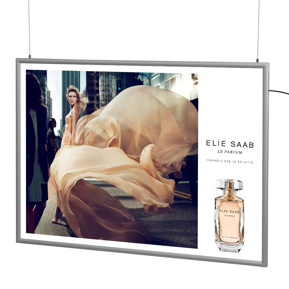 This double sided light box is the perfect way to advertise in your business! The hanging poster holder is dual-sided, able to be seen in multiple directions at once to maximise your promotion! The hanging display can be installed to a ceiling using the included hardware kits which has 2 wall anchors and screw sets with 2m of wire to make positioning and installing this display easy. The frame includes mounts on both sides to hang in portrait or landscape orientation. The hanging kit screws into the mount on the ceiling and on the frame for simple set-up once the wire is hung.