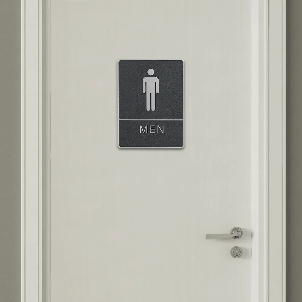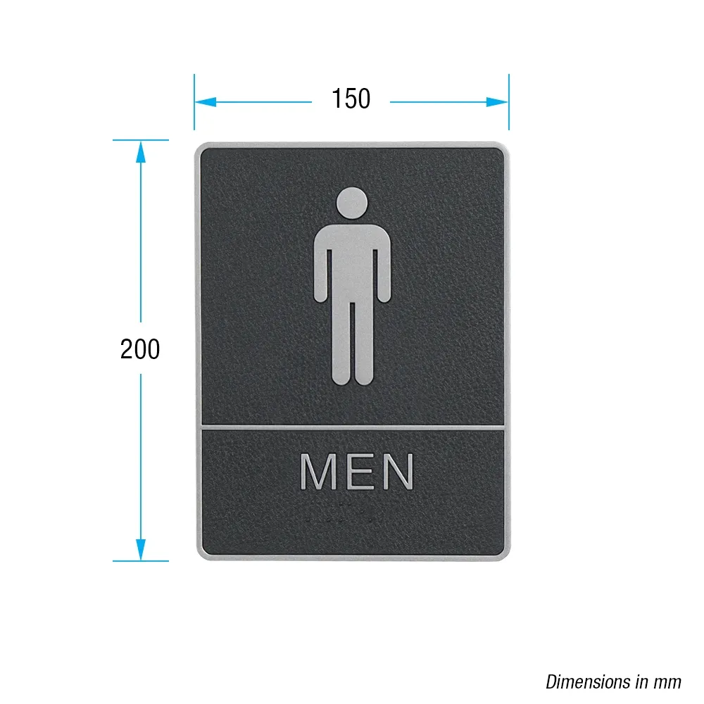 This ADA men's restroom sign helps to identify the toilet for visitors at universities, shopping centers, transportation stations, exhibition halls, and more this signage features a high contrast design with designs against a black background to be easily seen. A male figure and the word “MEN” is printed in white on the seen for easily visibility as visitors approach. The 150 x 200mm size of the display is large enough to be seen without being too obtrusive whilst on display at your location.