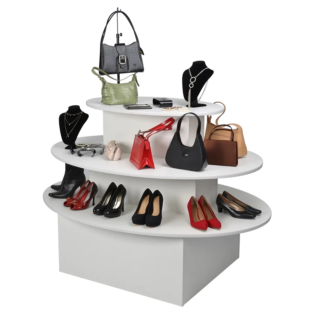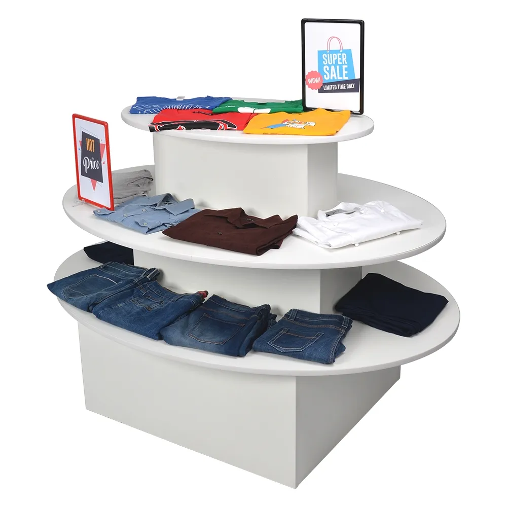 Looking for oval round retail display tables to promote your merchandise? This merchandising table helps you display different merchandise, including books, clothing, and electronics, with ease for customers to peruse. There are 3 tiers to the display that allow heaps of products to be showcased and give plenty of choices. The top shelf is 920 x 615mm, with the bottom two shelves having 285mm of space between levels to make providing heaps of stock or showcasing taller items easy.