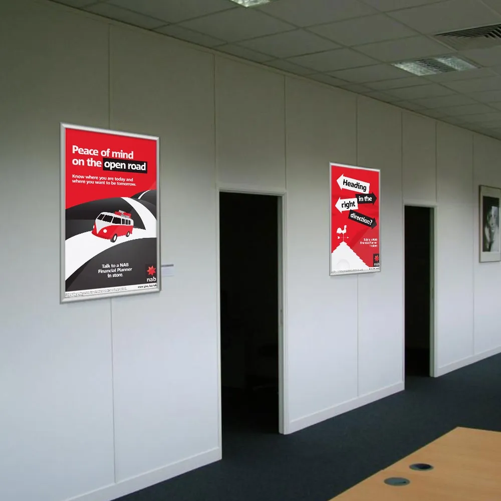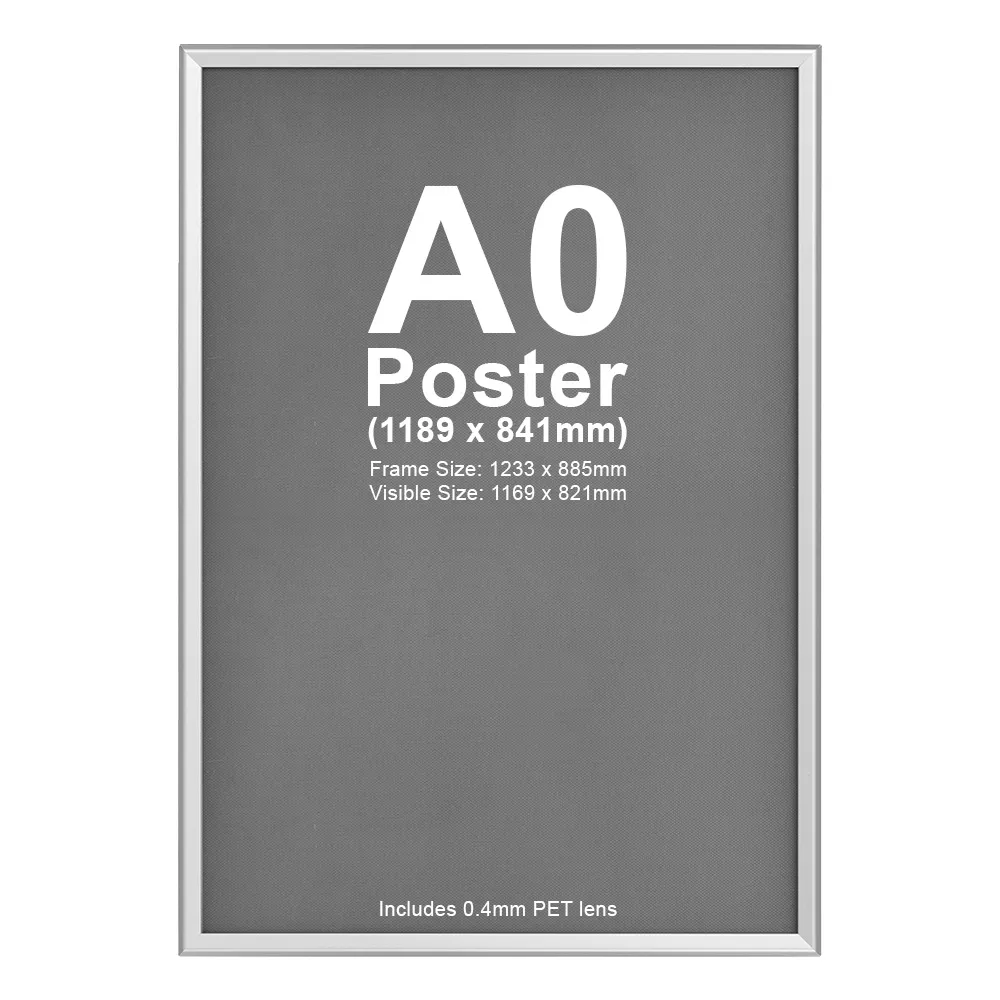 The snap frame is designed to be user friendly- posters can easily be changed by lifting up the sides of the frame, placing the poster with the protective lens into the frame and snapping the sides of the frame down. The plastic lens will protect your artwork and also eliminate light from reflecting off the surface. Your advertisements will be seen by all your customers and clearly show your advertisements and posters. The sign frames are easy to install- we have provided the hanging hardware and also added mounting holes at the back of the snap frame. We also stock these snap frames in A1, A2, A3 & A4 sizes.