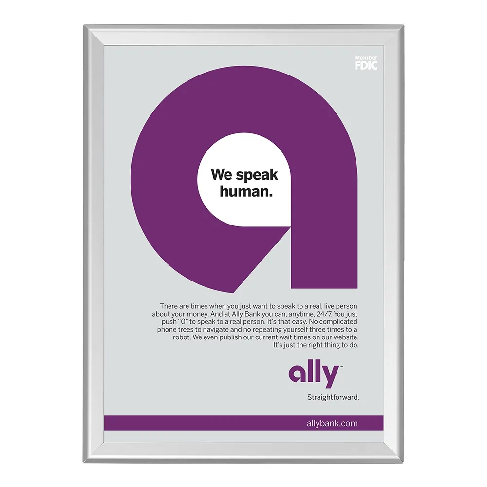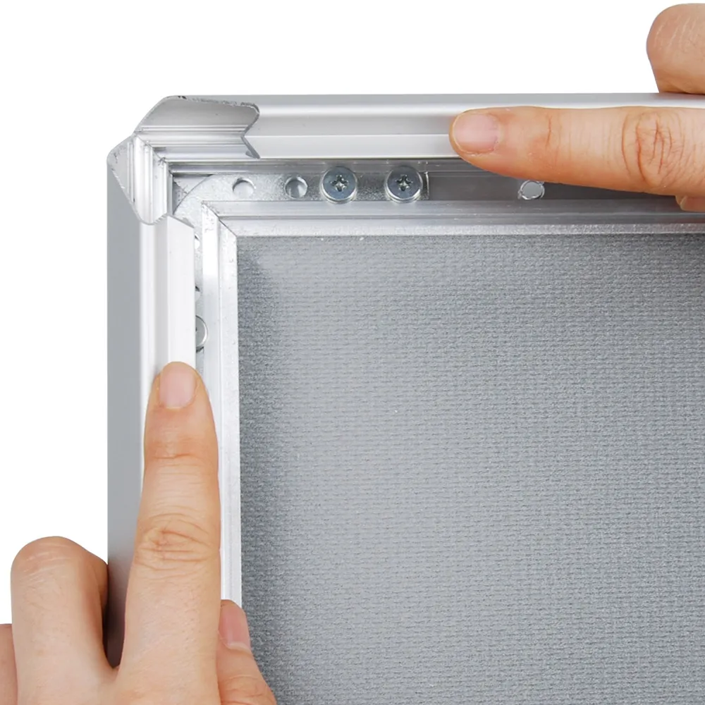 The sign frames are an easy to use poster holder for your retail store, café or bank. Sign frames are constructed using aluminium in a silver finish and are complete with hardware for you to mount the snap frame on a flat surface. Our snap frames have mounting holes in the back of the unit and the snap frames also come with a protective plastic lens. These sign frames can be displayed in either landscape or portrait format which will give you more options when it comes to displaying your artwork.