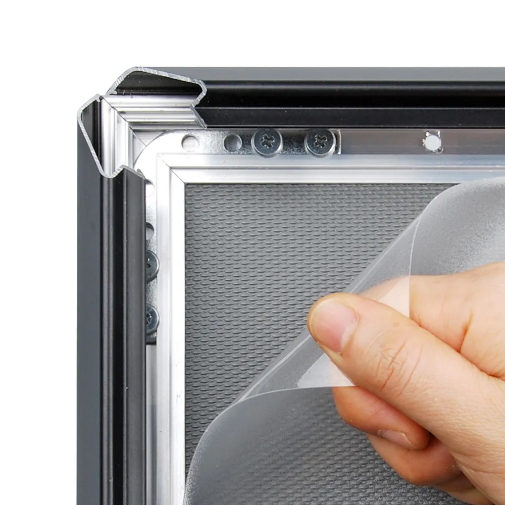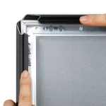 This heavy duty sign frame can be used to be displayed in places such as retail shops, offices or lobbies. The durable frame is a simple snap frame- by simply lifting the sides of the frame up, you will be able to place your artwork in the frame and use the protective lens on top. The frames have been prepared with mounting holes which means that they are ready to use and install straight out of the box for your convenience.