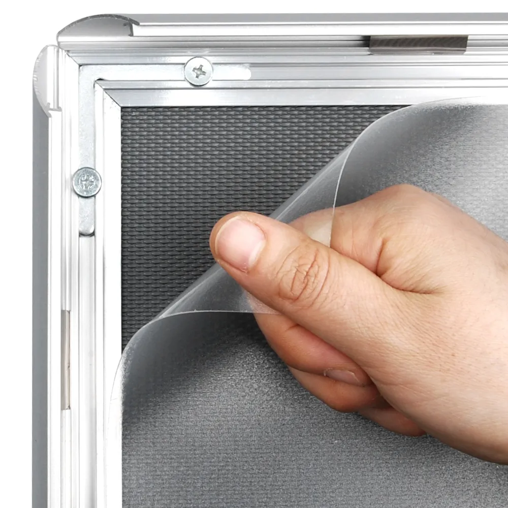 All our poster frames use Slimline Warehouse's ingenious snap frame system, graphic changes are quick and easy taking just 60 seconds while a clear lens in each of your frames keeps poster clean and laying flat in the frame.