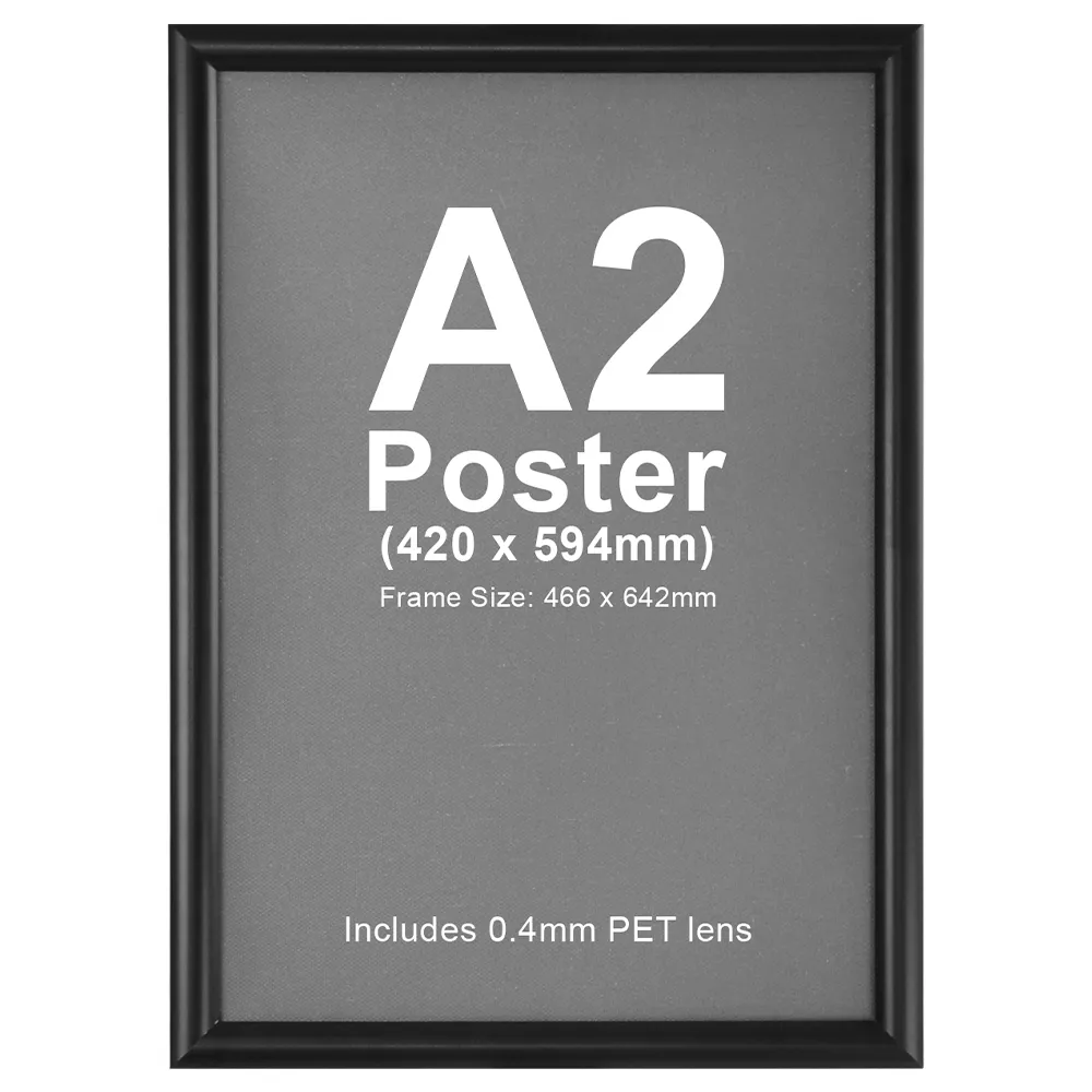 • Snap frame poster holder displays A2 (420 x 594mm) graphics within clipframe