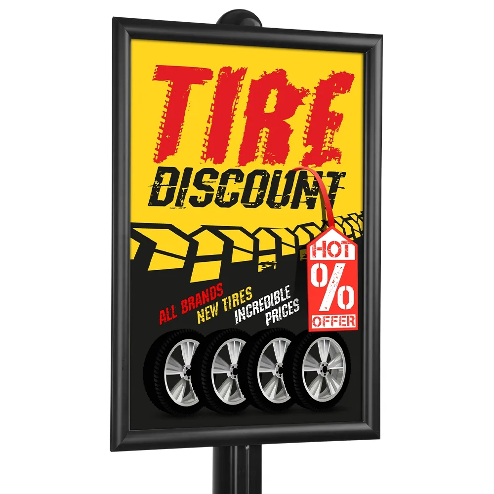 This snap frame poster holder displays A2 (420 x 594mm) graphics in portrait orientation on freestanding displays, creating a promotional kiosk to get bypassers interested! The clip frame design makes it easy to switch out graphics with no tools necessary. Simply snap open the four sides, remove the existing graphic and protective lens, replace and snap closed. The quick change takes less than a minute so other more important tasks can be given priority, such as larger change overs and helping customers at your location.