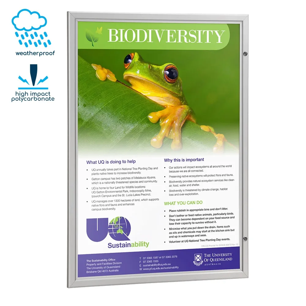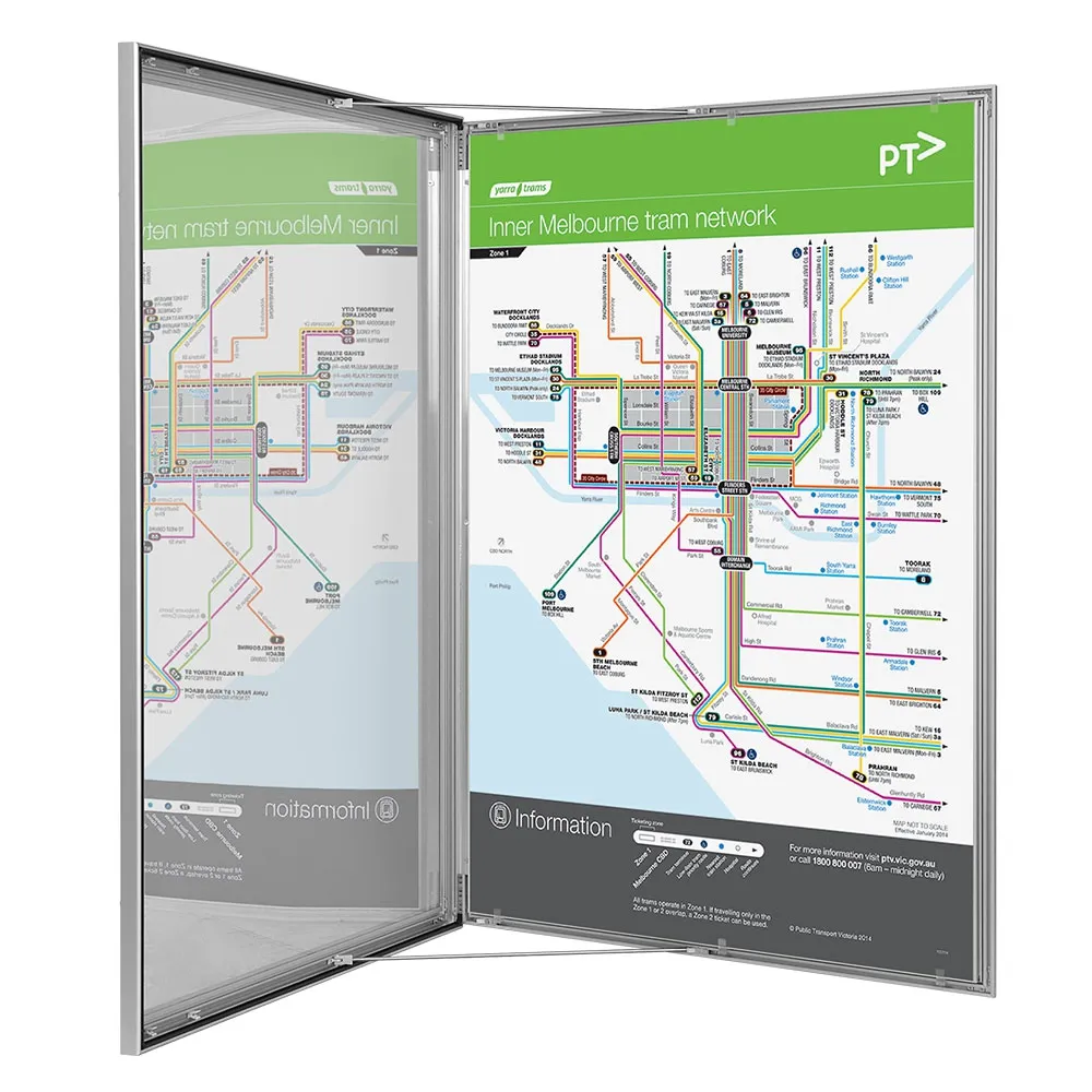 The stylish and refined frame is also great for interior applications, and its size provides a powerful and noticeable presentation to any poster. This makes them great performers in shopping centres, transport terminals, sporting arenas and elevators.