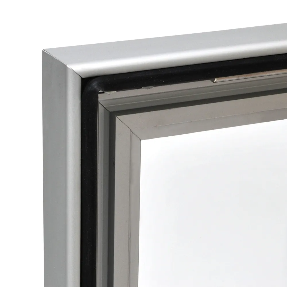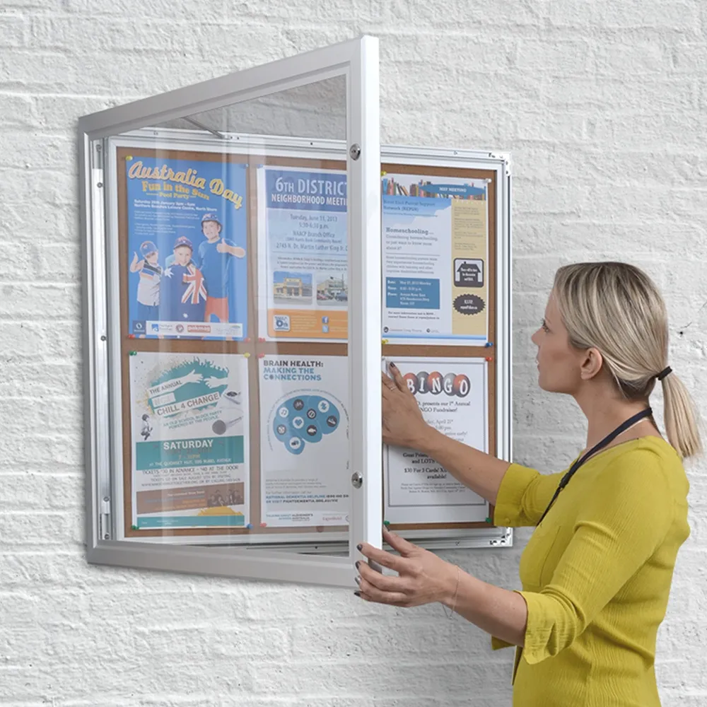 - Changing out posters is simple, with interior struts propping door open