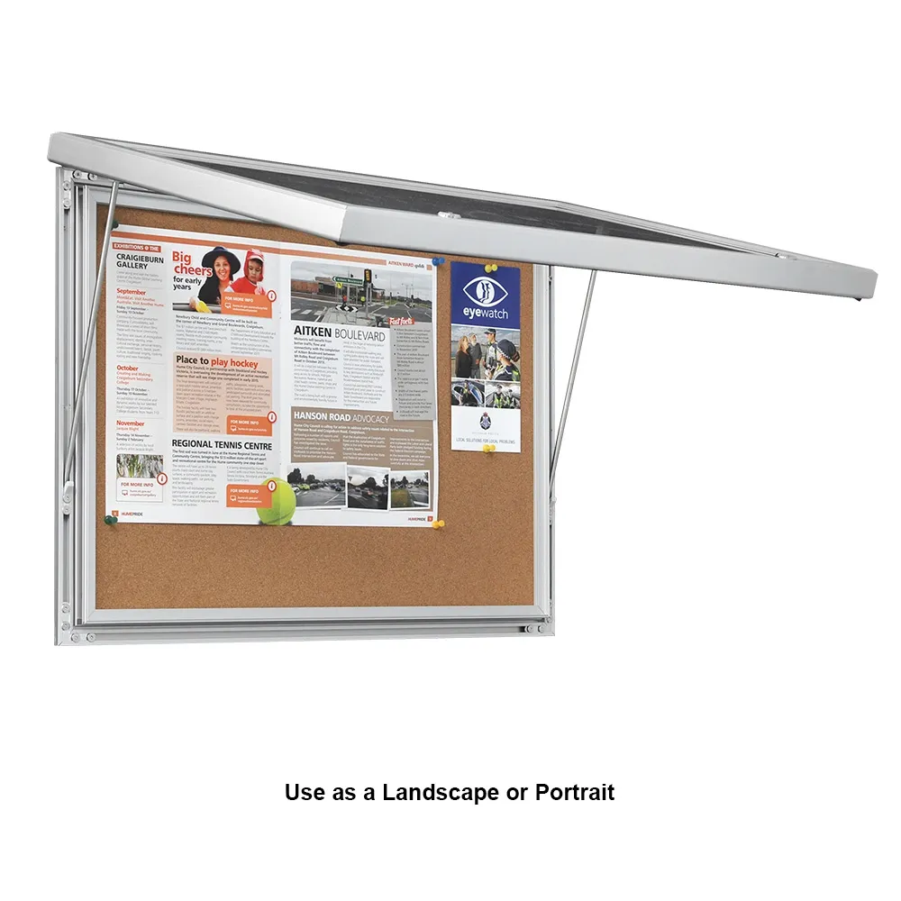 This display has hardware included for mounting onto most wall surface types. If unsure whether the included installation hardware is appropriate for your location, please consult with a professional before attempting to install. The versatile lockable noticeboards can be mounted either in portrait or landscape orientation!