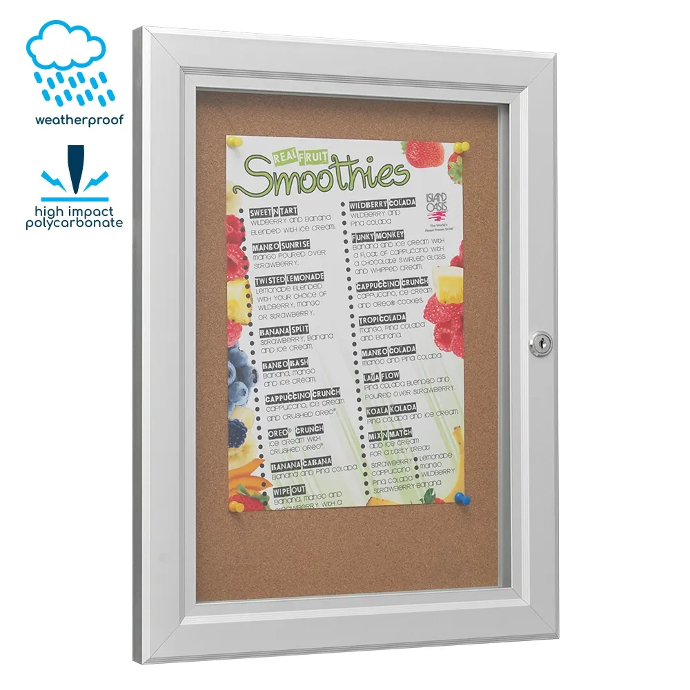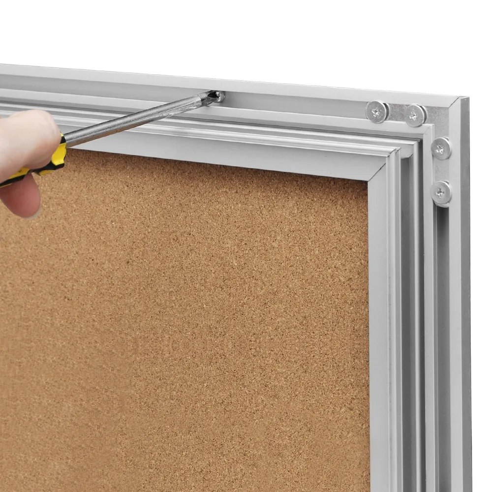 This aluminium frame display is able to stand up to use in heavily-trafficked areas, taking minor wear and tear for a quality unit that last for years to come. The satin silver finish blends in easily with any décor as well! This is a waterproof bulletin board that features a rubber gasket around the interior frame to prevent water from seeping in to damage case contents for a frame that can be used in both indoor & outdoor locations!